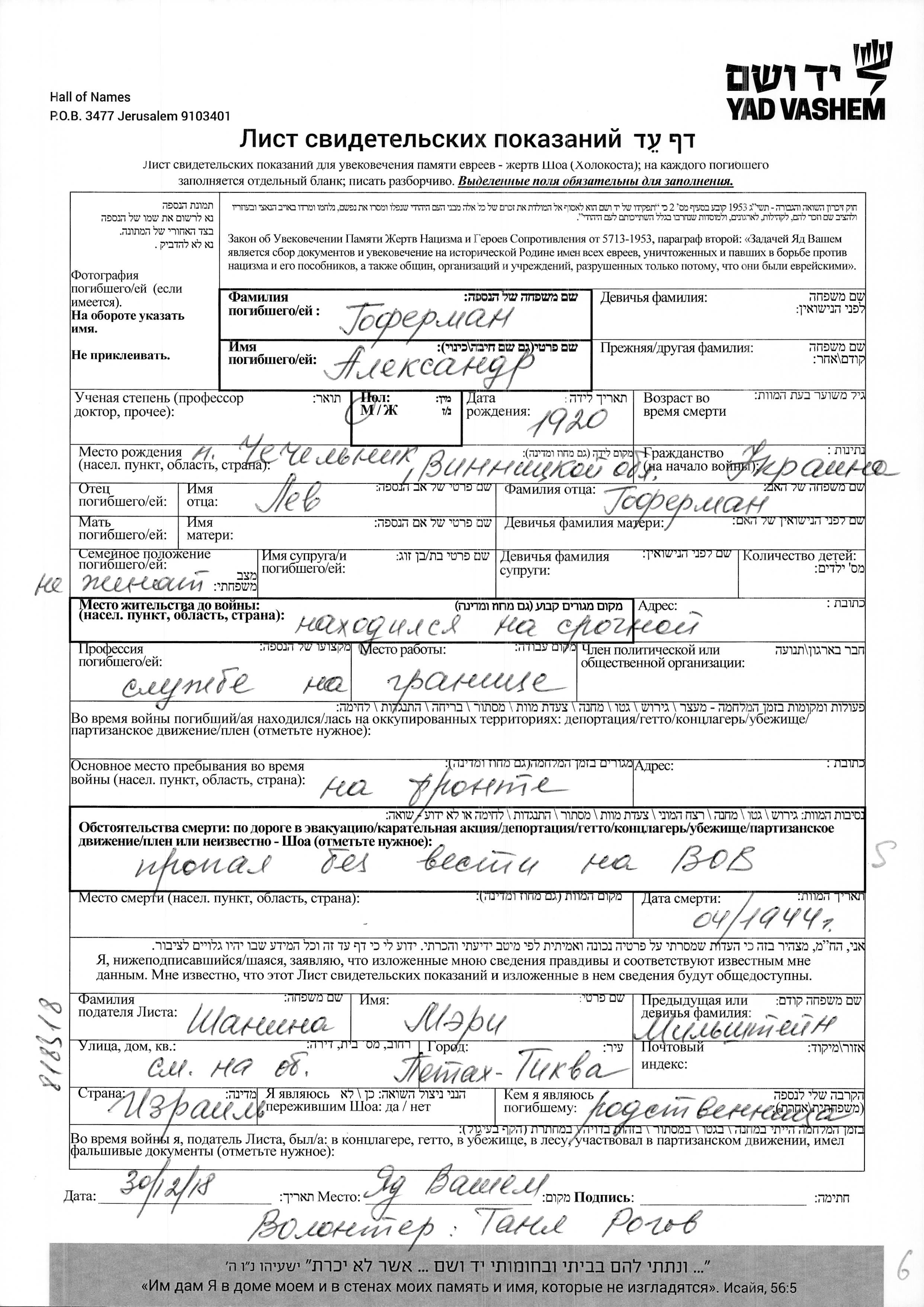 Aleksandr wurde in der Schoah ermordet. Todesort: unbekannt im Jahr 04/1944.