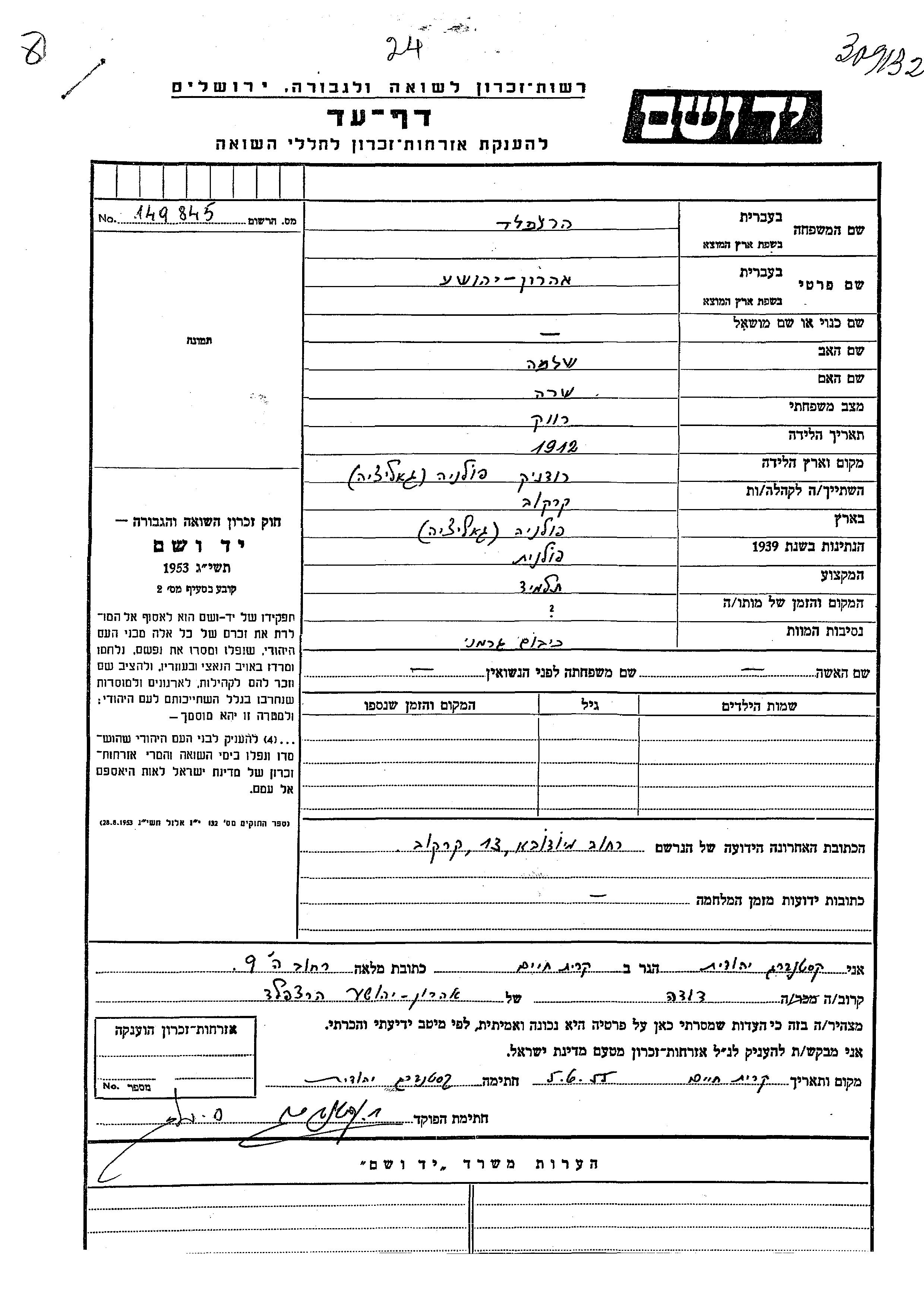 Aharon Yehoshua wurde in der Schoah ermordet.