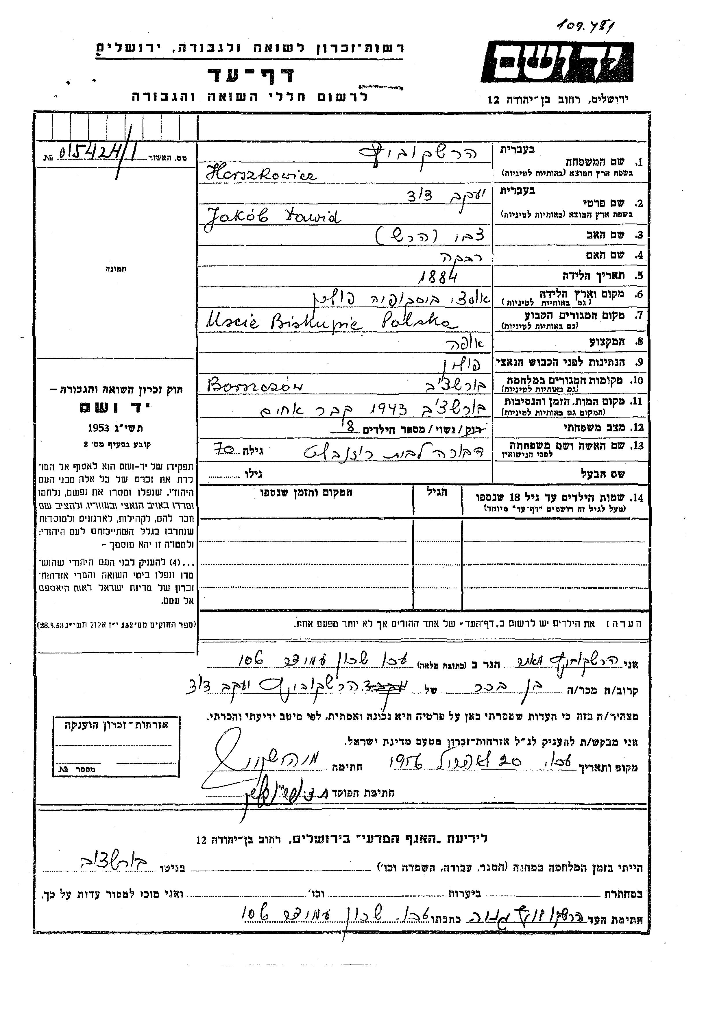 Yakob Dawid wurde in der Schoah ermordet. Todesort: Borszczow, Polen im Jahr 1943.