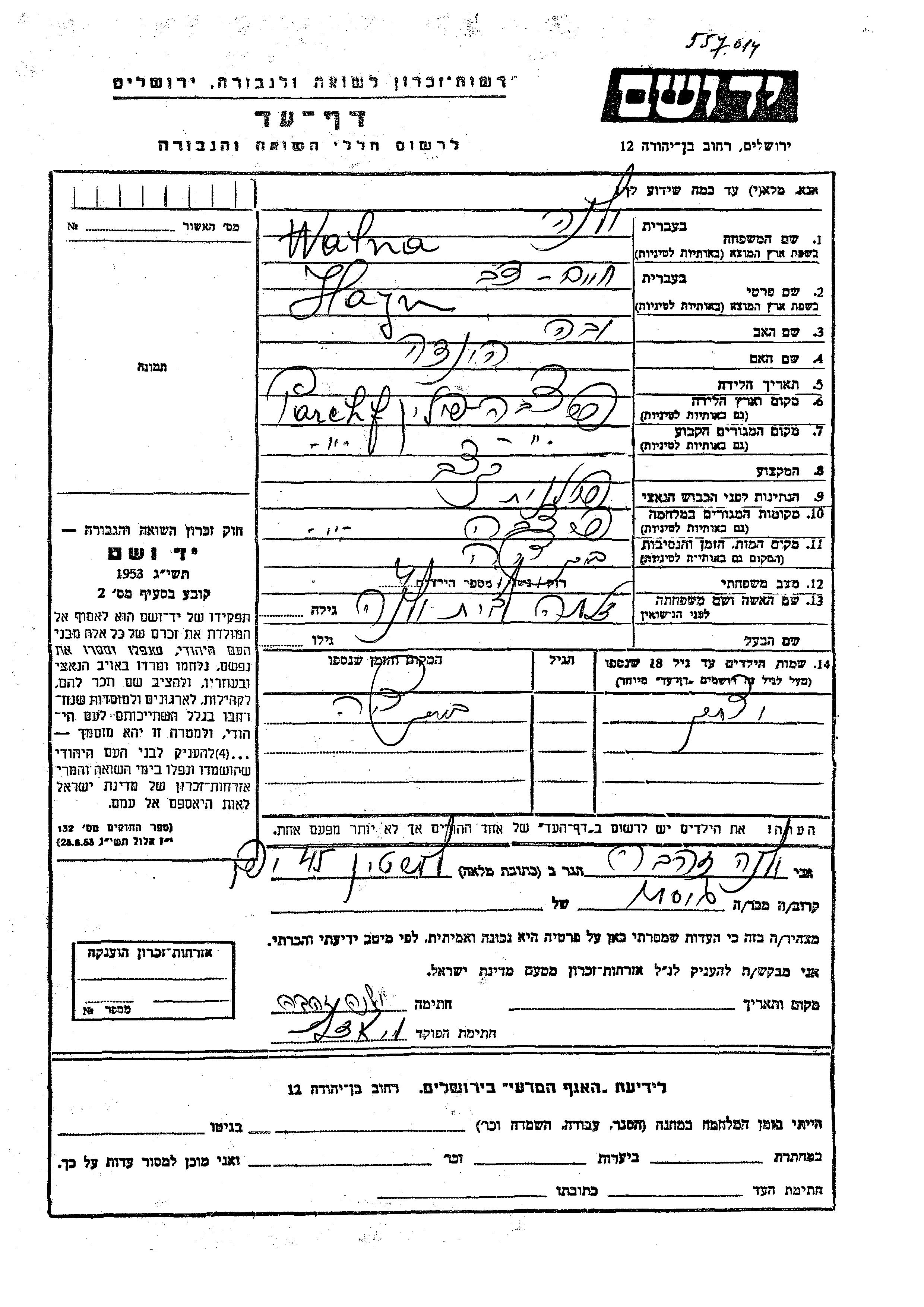 Haym Dov Walna wurde in Parczew, Polen geboren. Er war der Sohn von Weba und Hinda. Er war Metzger/-in und mit Zlata, geb. Valne Verheiratet. Vor dem Zweiten Weltkrieg lebte er in Parczew, Polen. Während des Krieges war er in Parczew, Polen.