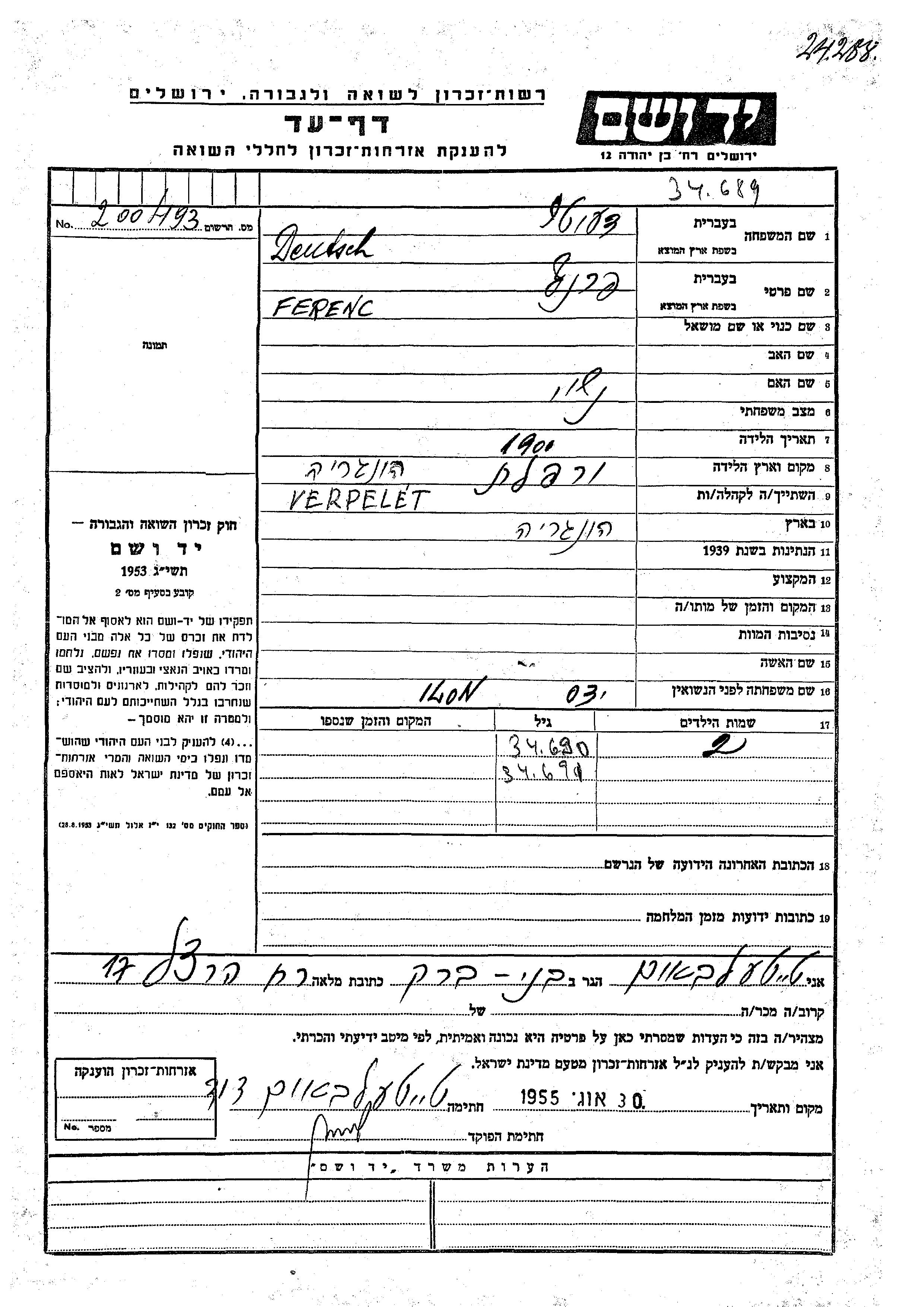 Suche nach einem Todesjahr im Zeitraum der Holocaust: 1933 bis 1945. Bitte wählen Sie 'Exakt' im Auswahlmenü, um nur nach einem einzelnen Jahr zu suchen, alternativ können Sie die flexibleren Optionen '+/- 2 Jahre' oder '+/- 5 Jahre' wählen.