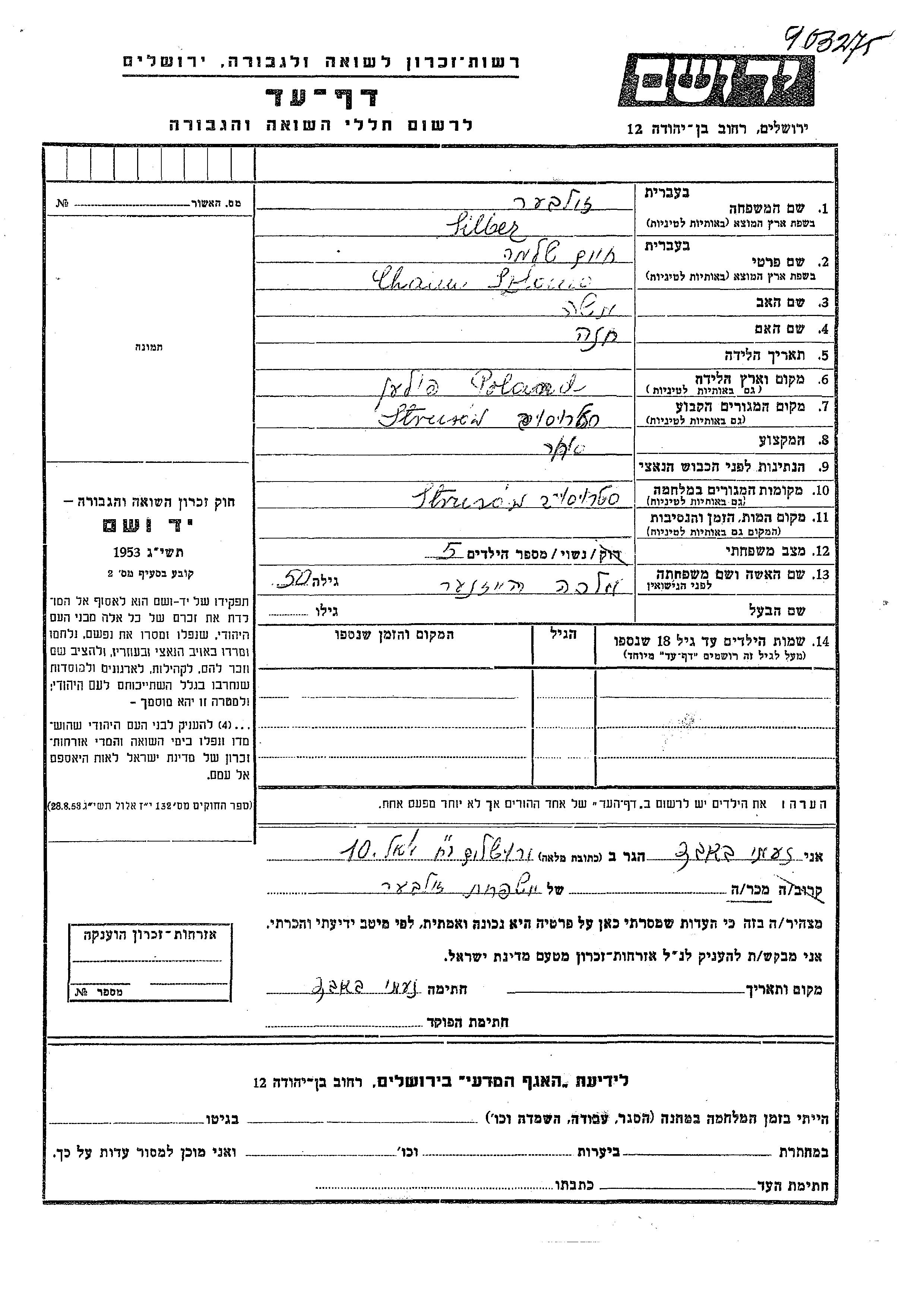 Chaim Zslomo Zilber wurde in Polen geboren. Er war der Sohn von Moshe und Khana. Er war Kaufmann/-frau und mit Malka, geb. Heizner Verheiratet. Vor dem Zweiten Weltkrieg lebte er in Strusiv, Polen. Während des Krieges war er in Strusiv, Polen.