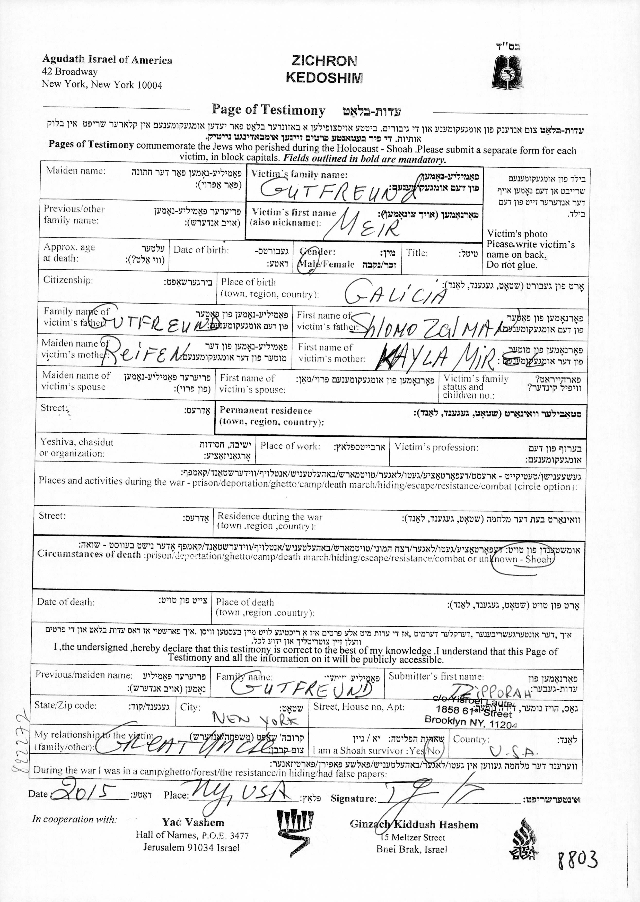 Gutfreund Meir unbekannter Ort, Gedenkblatt