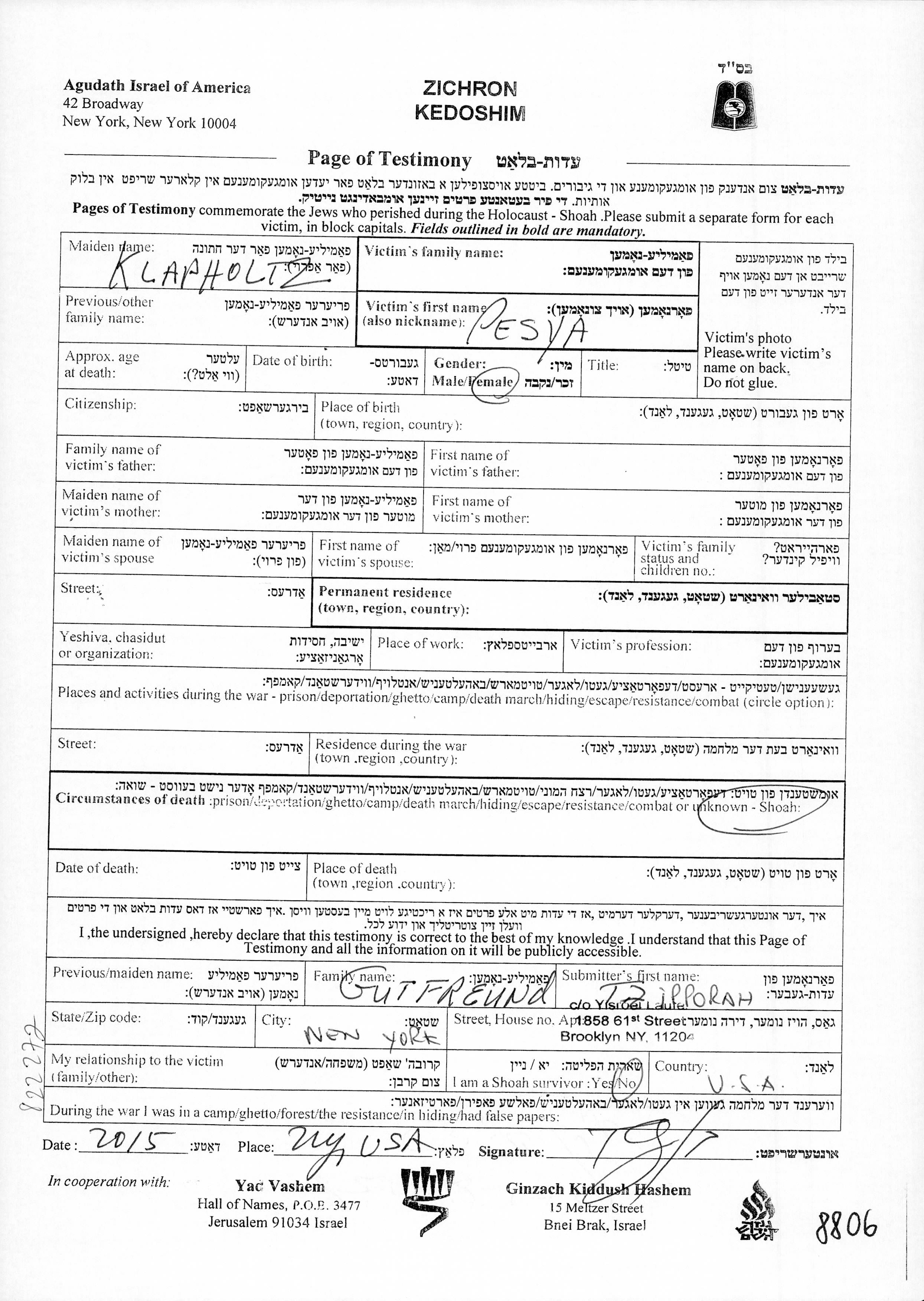 Name unbekannt Pesya unbekannter Ort, Gedenkblatt