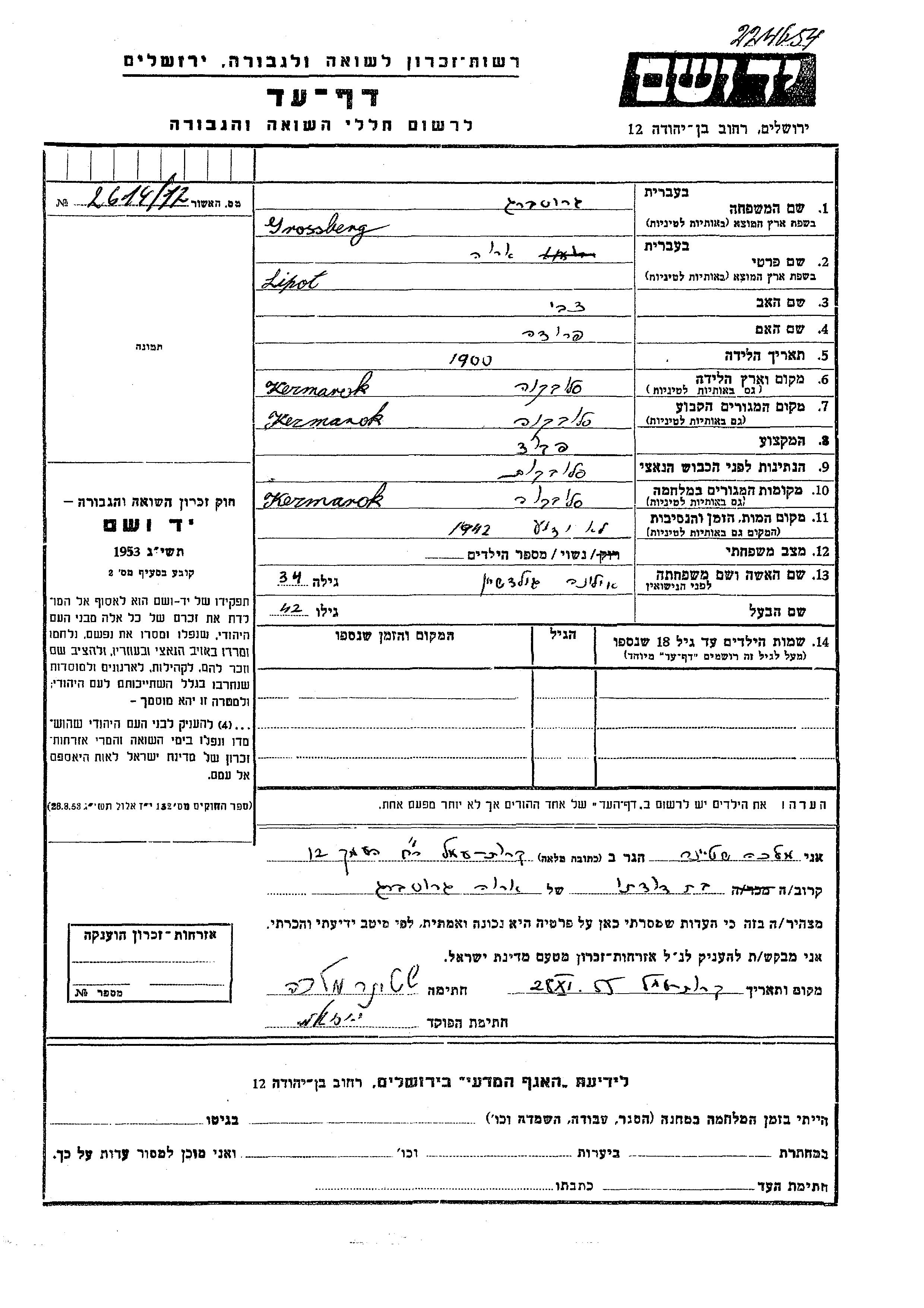 Lipot Arie Grossberg wurde im Jahr 1900 in Kezmarok, Tschechoslowakei geboren. Er war der Sohn von Tzvi und Frida. Er war Angestellte/-r und mit Ilona, geb. Goldshein Verheiratet. Vor dem Zweiten Weltkrieg lebte er in Kezmarok, Tschechoslowakei. Während des Krieges war er in Kezmarok, Tschechoslowakei.