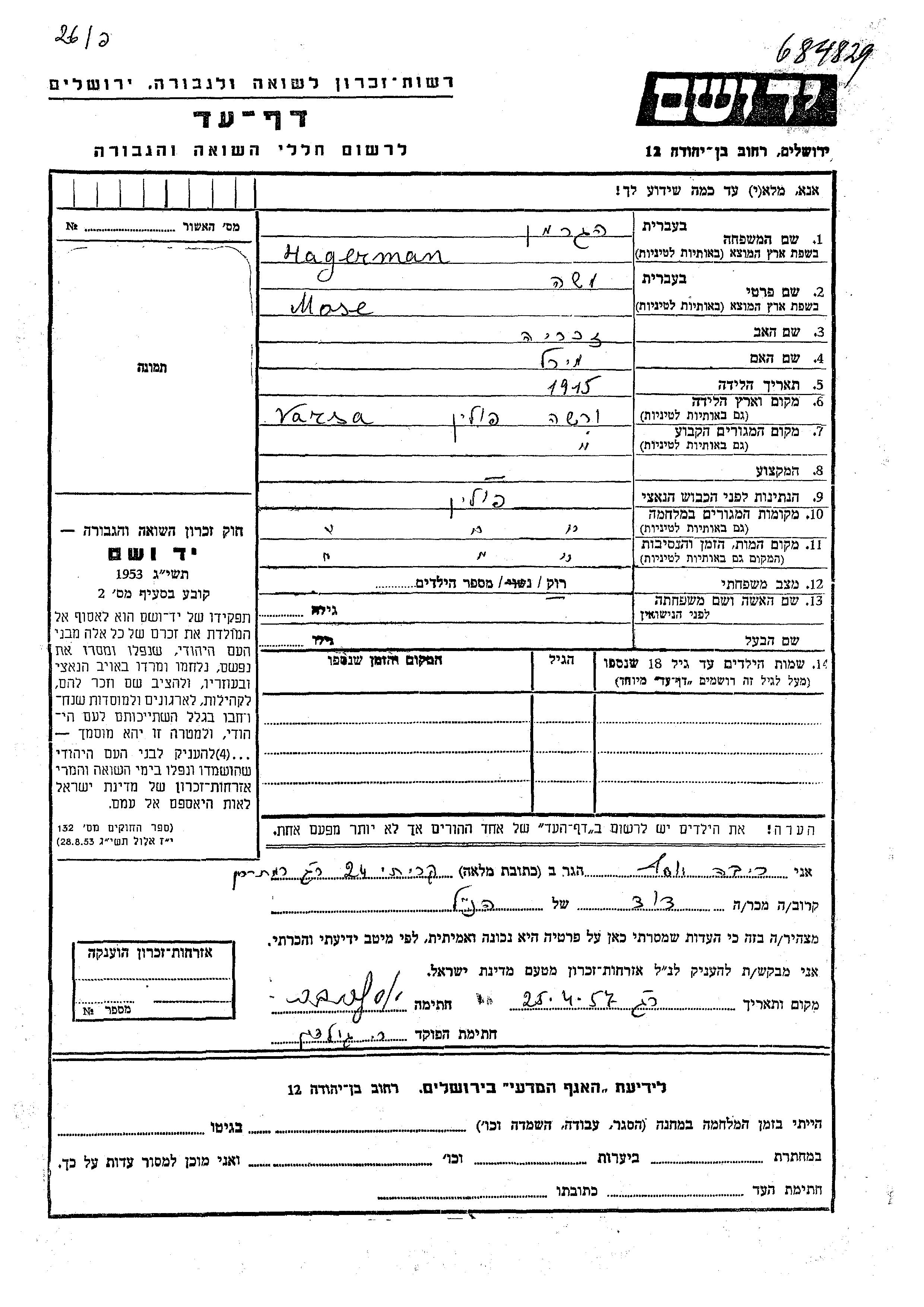 Moshe Hagerman. Vor dem Zweiten Weltkrieg lebte er in Polen.