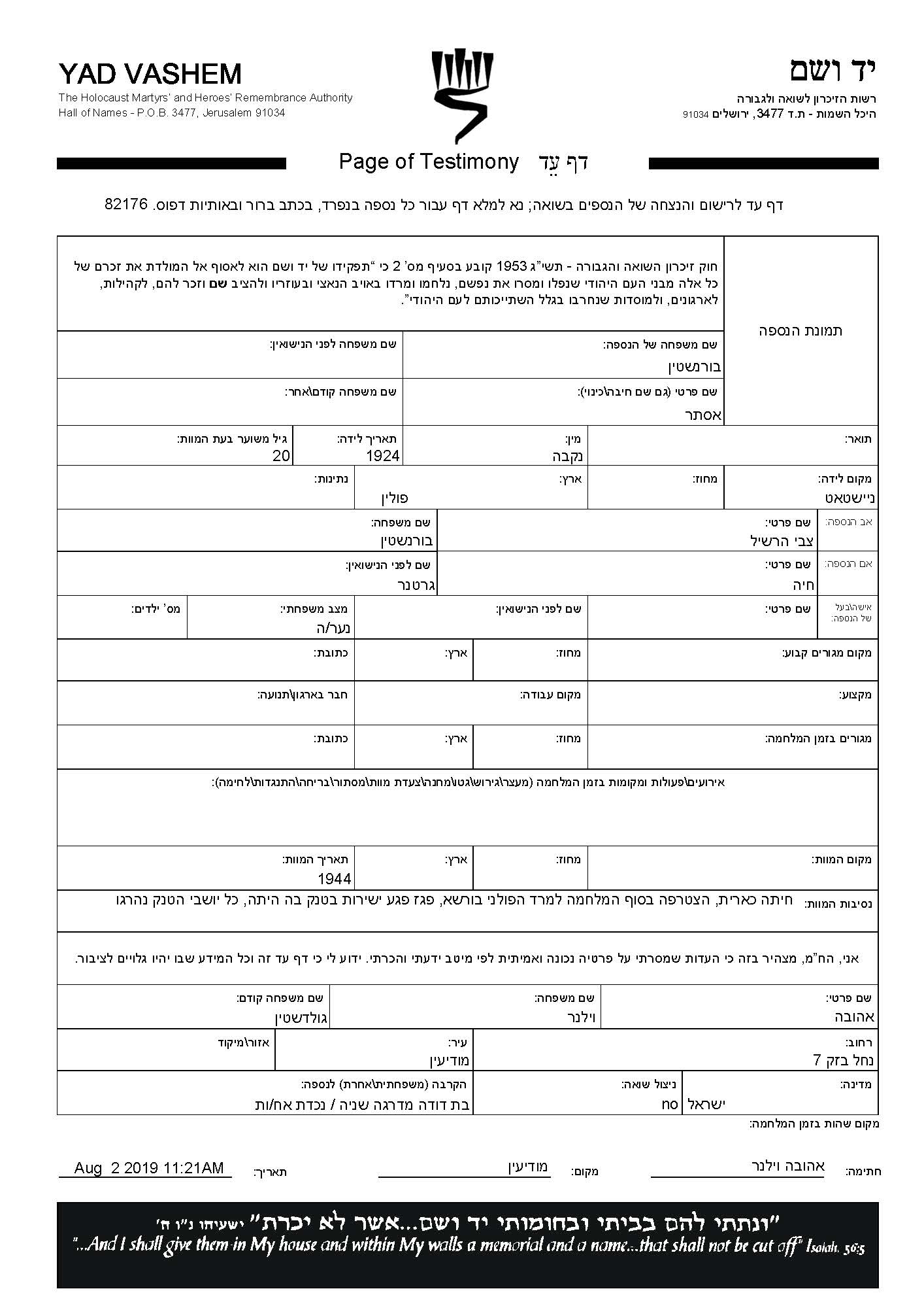 Suche nach einem Todesjahr im Zeitraum der Holocaust: 1933 bis 1945. Bitte wählen Sie 'Exakt' im Auswahlmenü, um nur nach einem einzelnen Jahr zu suchen, alternativ können Sie die flexibleren Optionen '+/- 2 Jahre' oder '+/- 5 Jahre' wählen.
