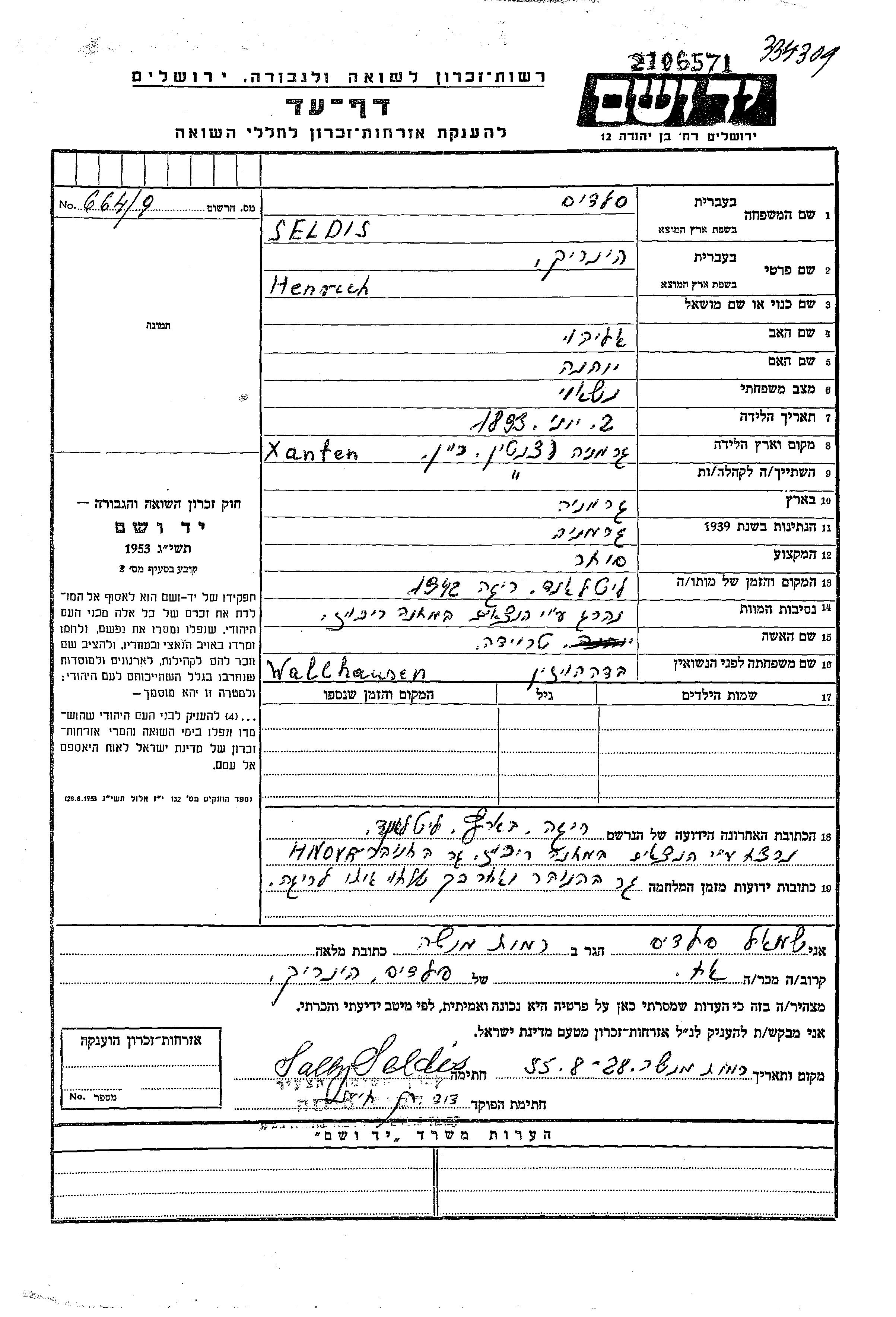 Henrich Seldis wurde im Jahr 1893 in Xanten, Deutsches Reich geboren. Er war Kaufmann/-frau. Vor dem Zweiten Weltkrieg lebte er in Xanten, Deutsches Reich.