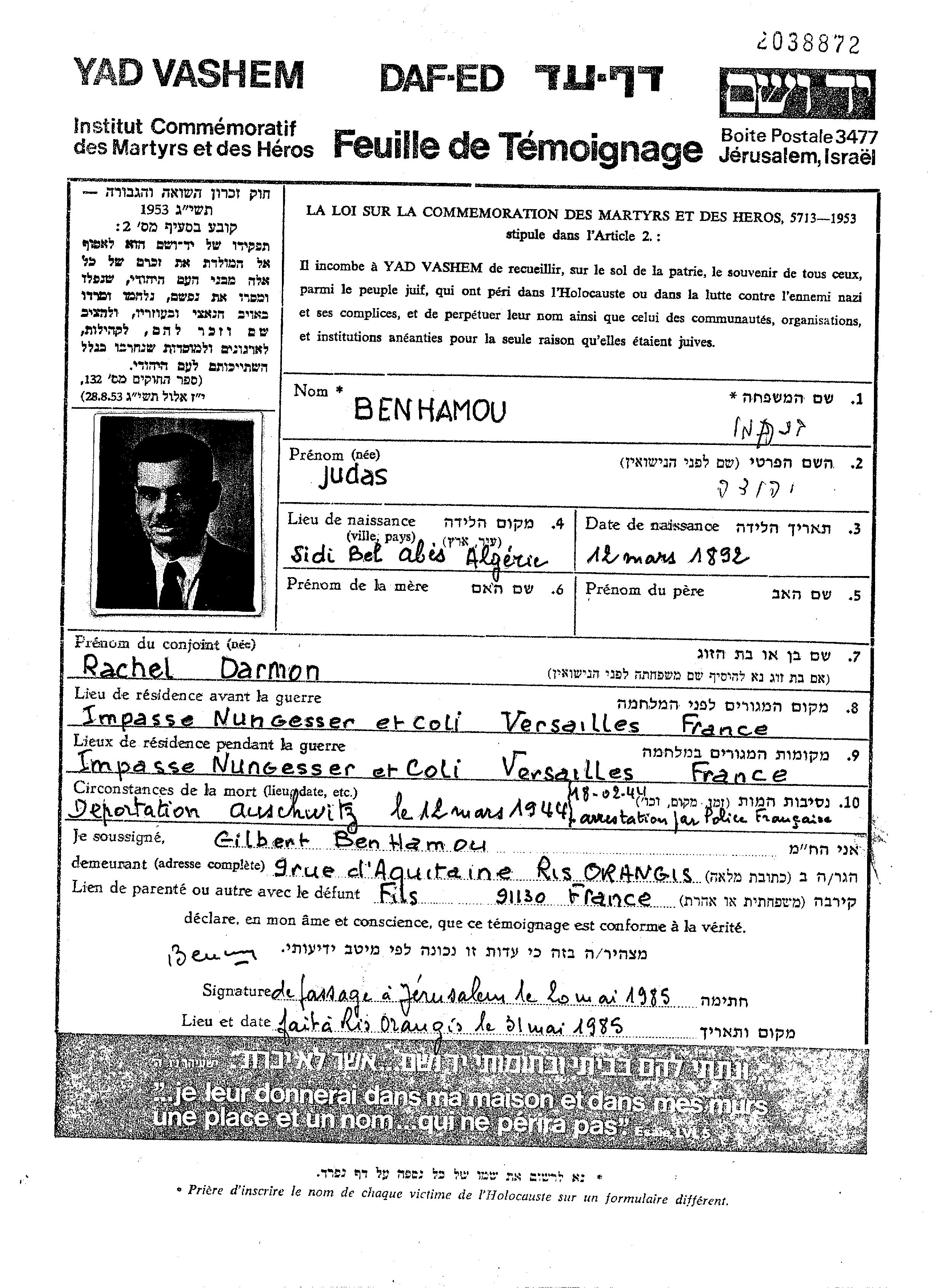 | Ben Hamou | Judas | 1892 | Sidi Bel Abbes, Algerien | Liste von Deportierten aus Frankreich |