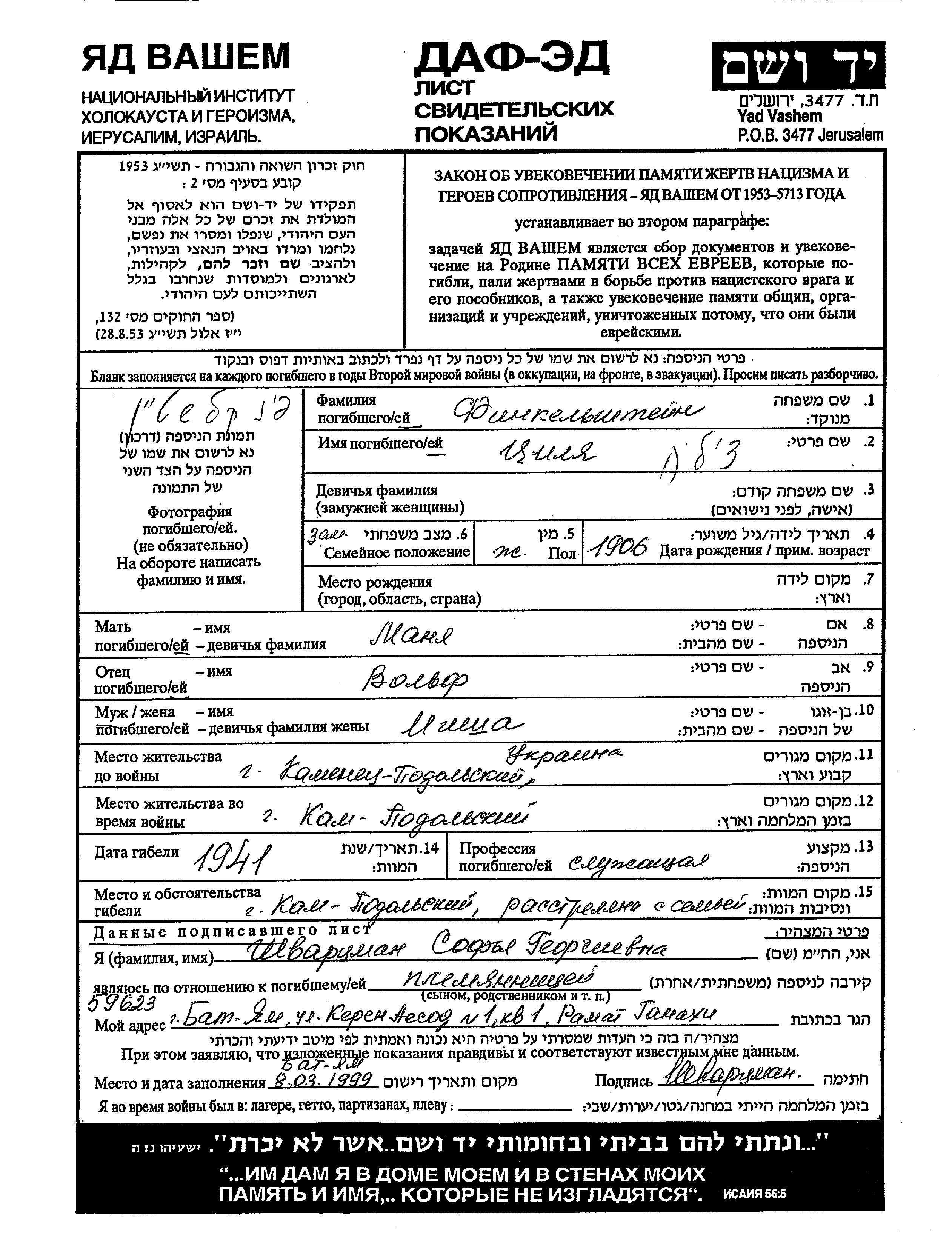 Suche nach einem Todesjahr im Zeitraum der Holocaust: 1933 bis 1945. Bitte wählen Sie 'Exakt' im Auswahlmenü, um nur nach einem einzelnen Jahr zu suchen, alternativ können Sie die flexibleren Optionen '+/- 2 Jahre' oder '+/- 5 Jahre' wählen.