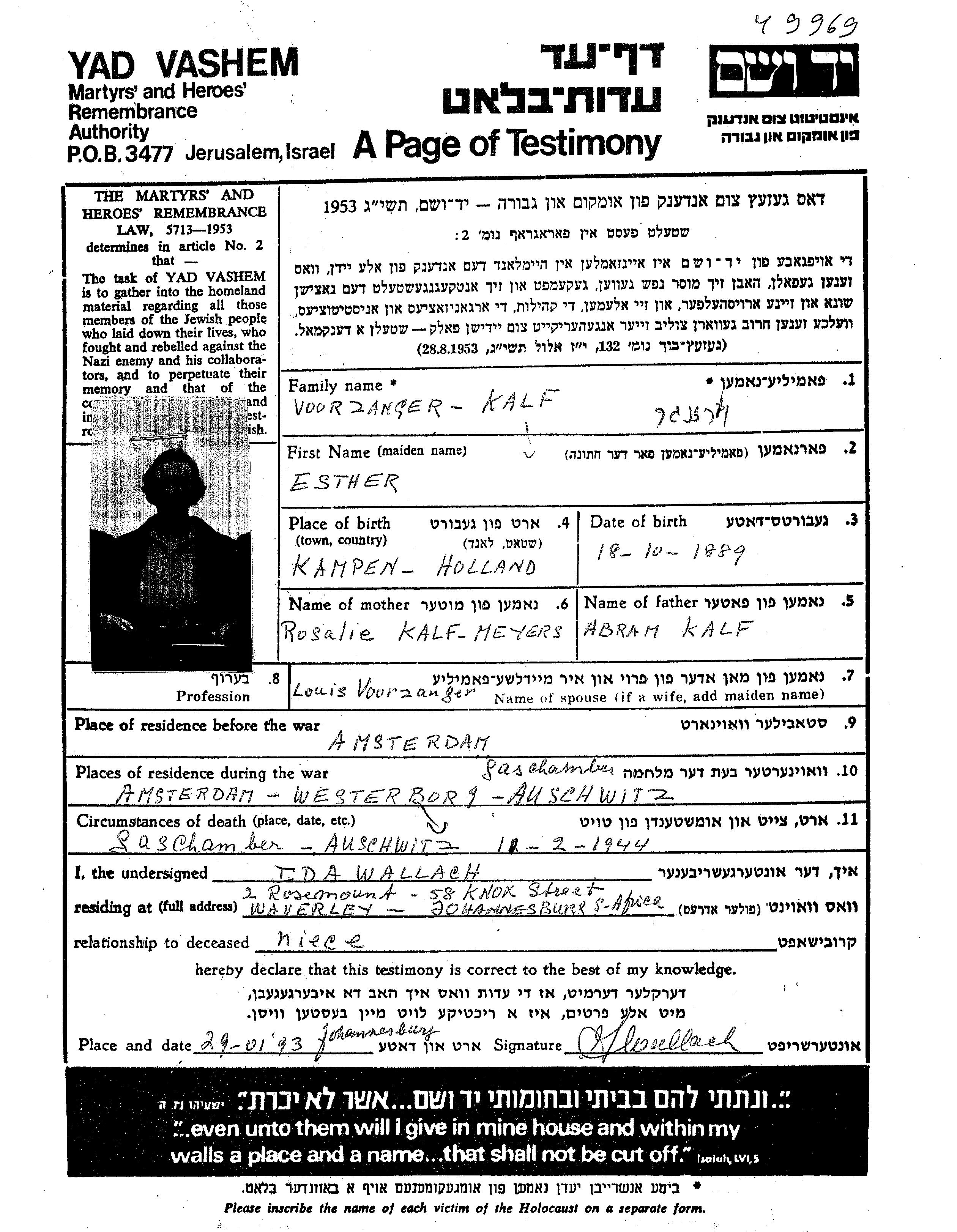 Voorzanger | Esther | 1889 | Kampen, Niederlande | Liste von ermordeten Juden aus Holland |
