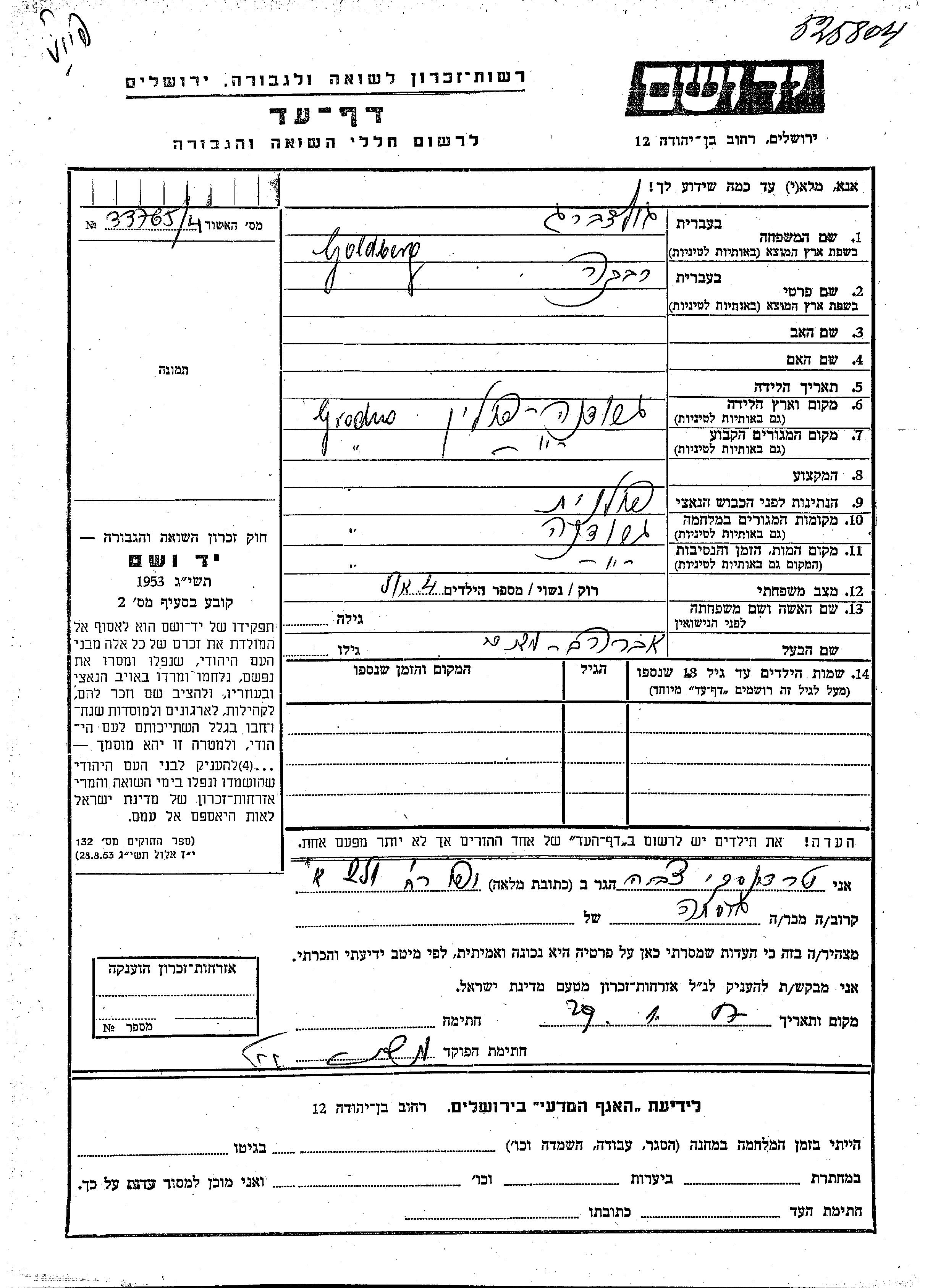 Goldberg Rivka Grodno, Polen Gedenkblatt