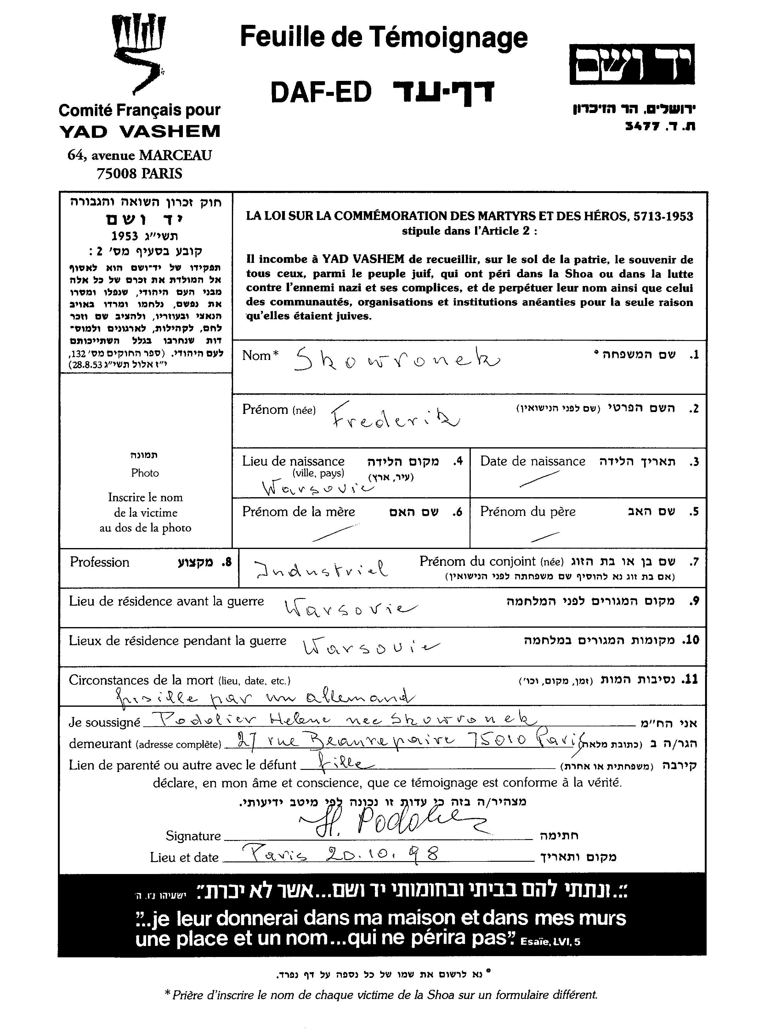Frederik Skowronek wurde in Warszawa, Polen geboren. Er war Fabrikant/-in und Verheiratet.