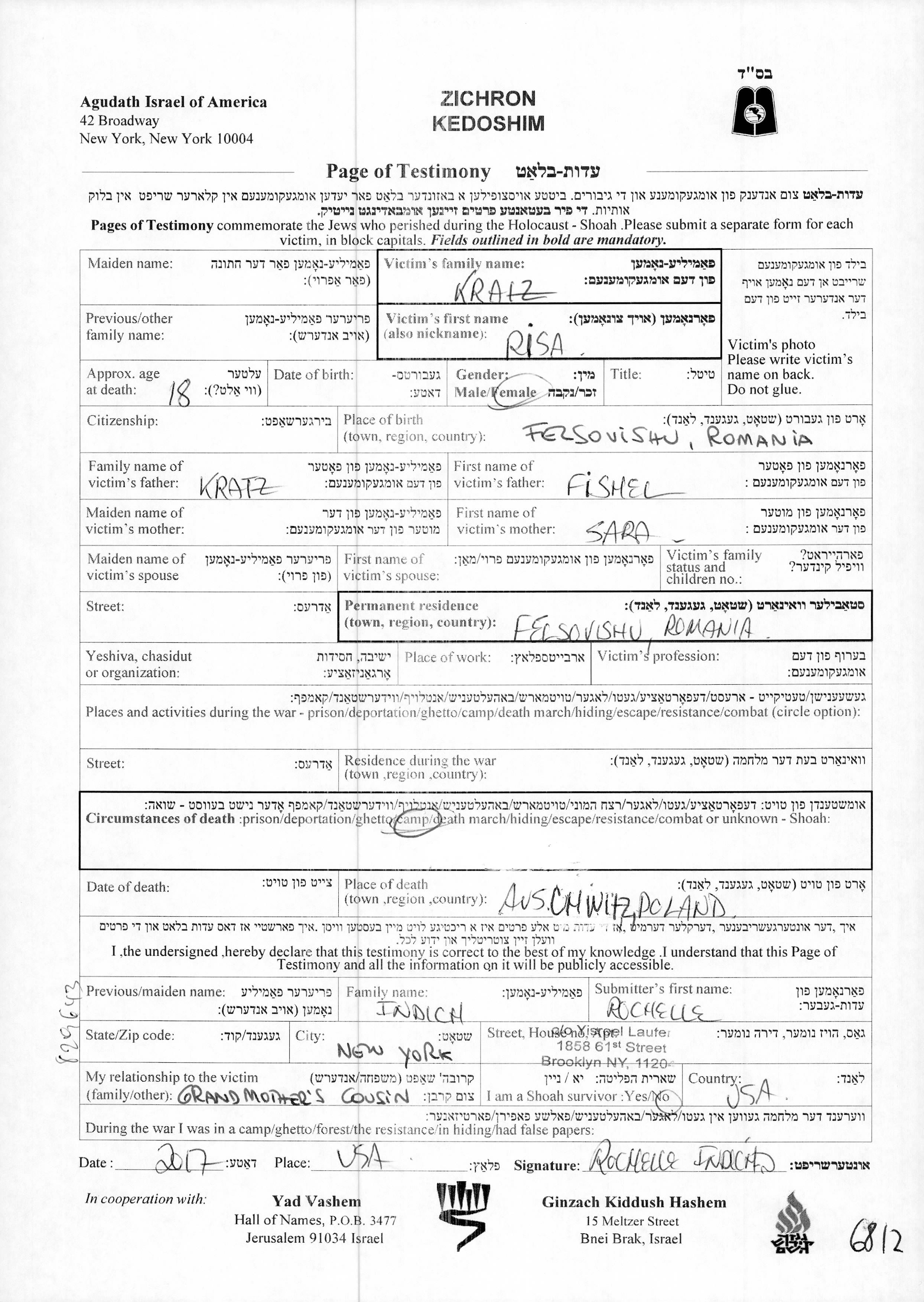 Risa wurde in der Schoah ermordet. Todesort: Auschwitz, Polen.