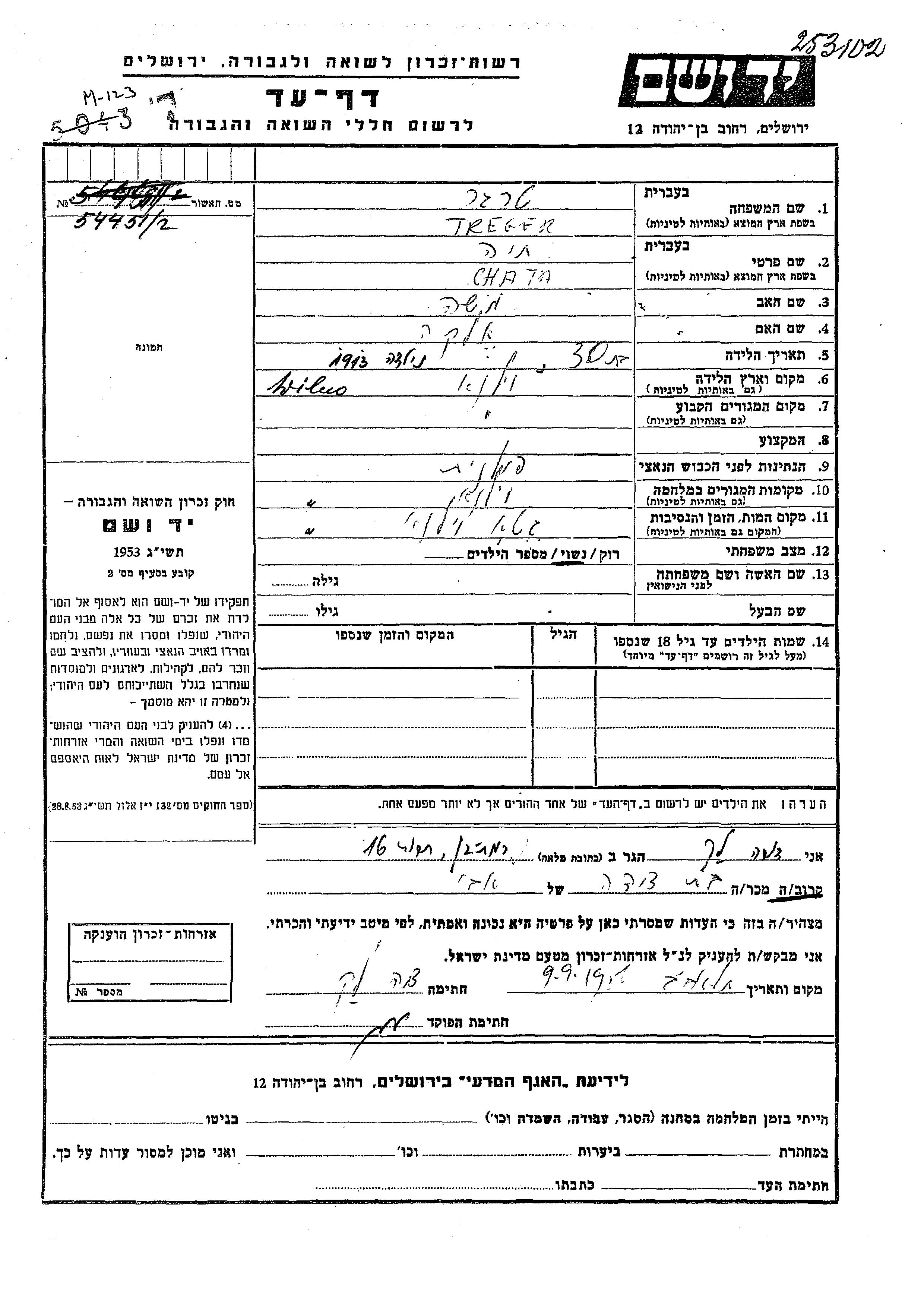 Ständiger Wohnsitz vor dem Krieg: Stadt/Ortschaft oder Bezirk/Region oder Land