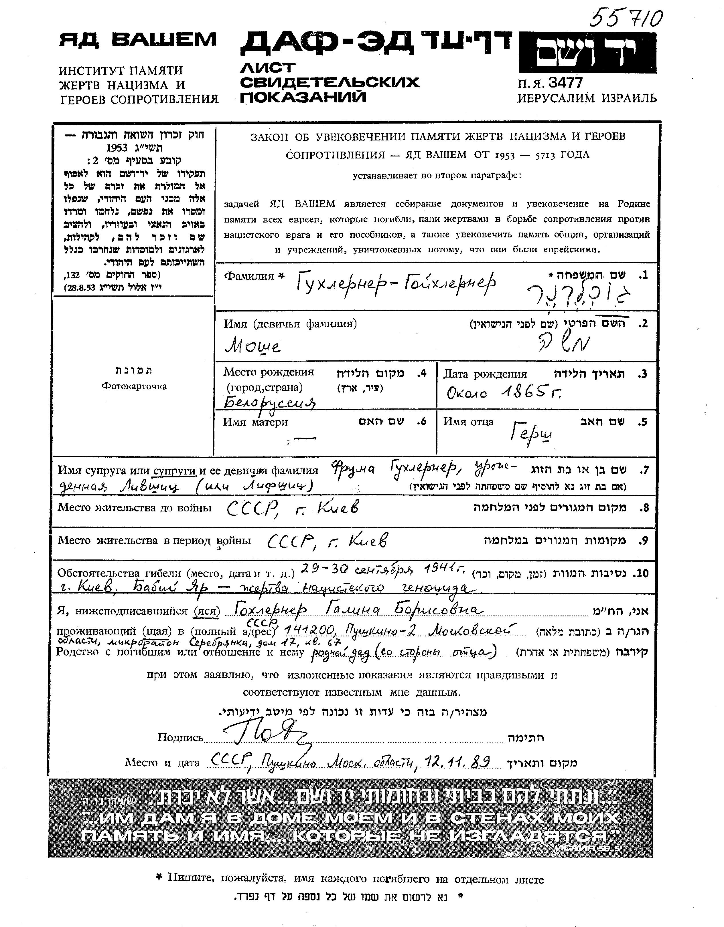 | Gukhlerner | Moshe | 1865 | Kiyev, Ukraine (UdSSR) | Gedenkblatt |