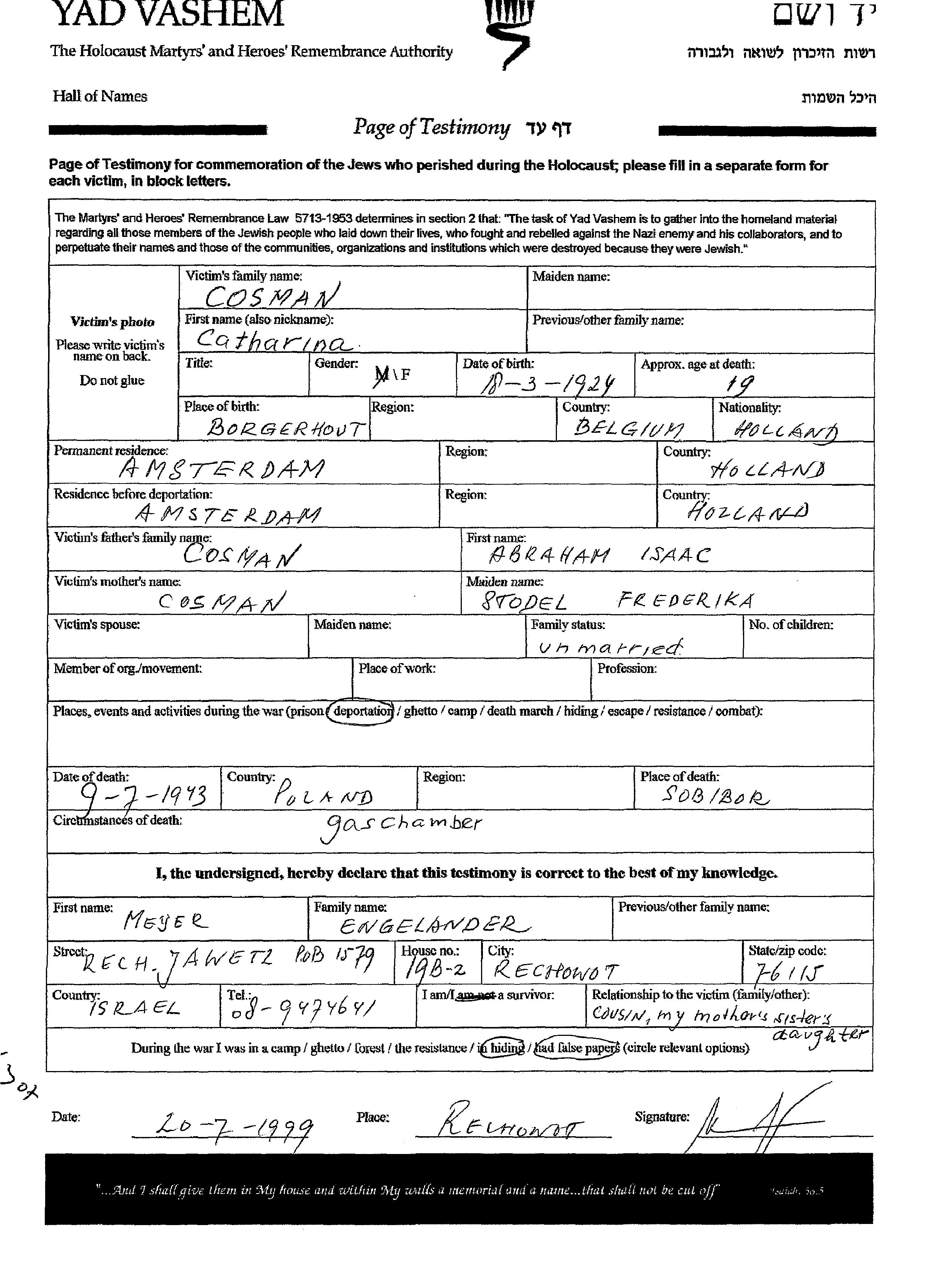 Kosman Catharina 1924 Borgerhout, Belgien Liste von ermordeten Juden aus Holland