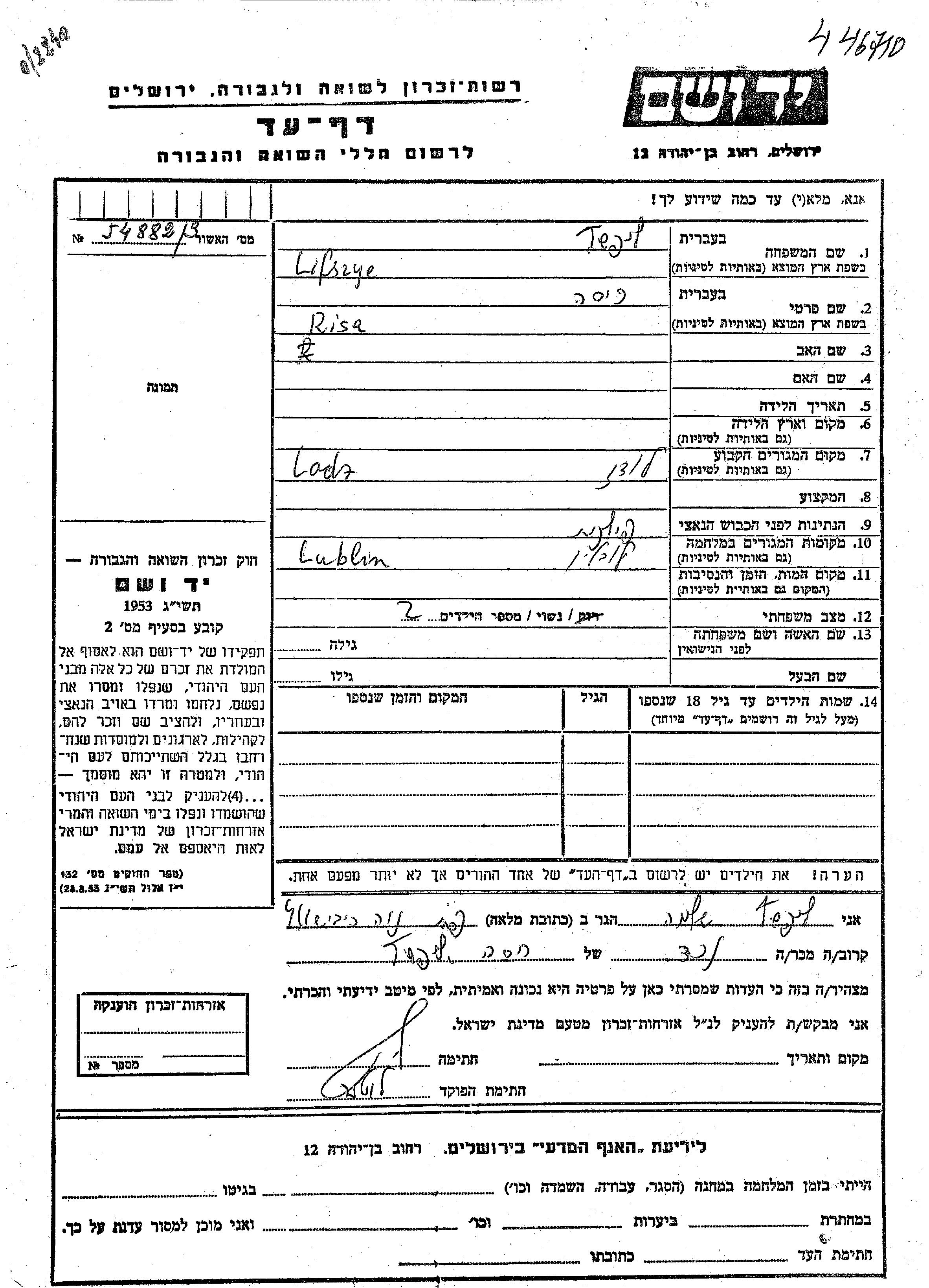 Risa wurde in der Schoah ermordet. Todesort: Lublin, Polen.
