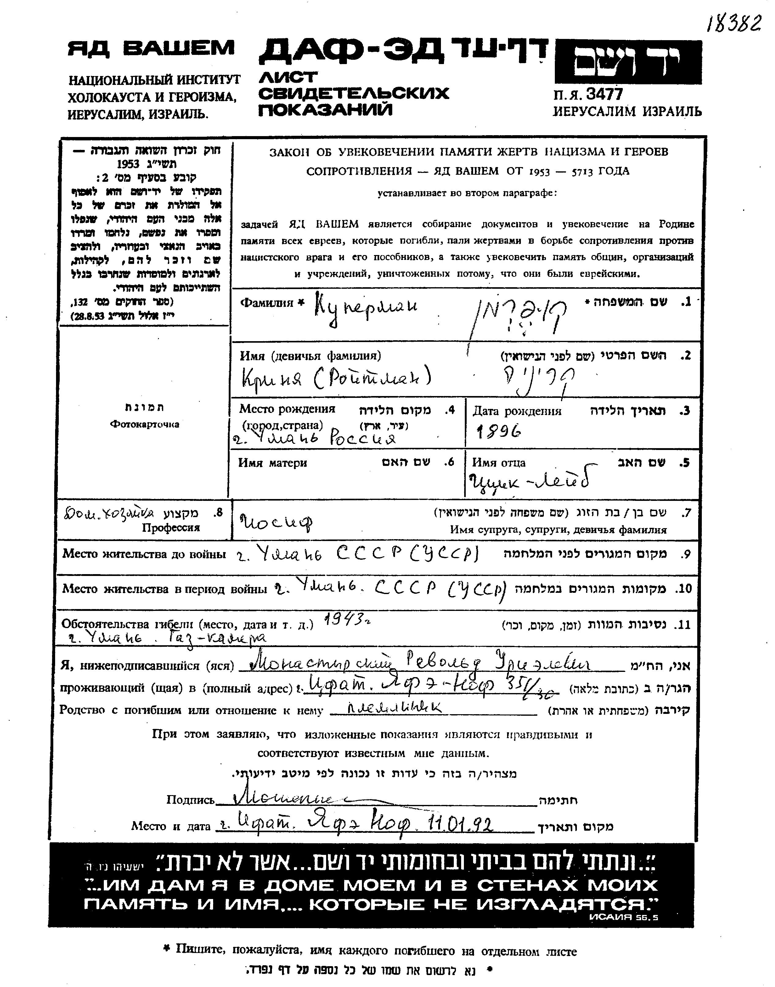 Suche nach einem Todesjahr im Zeitraum der Holocaust: 1933 bis 1945. Bitte wählen Sie 'Exakt' im Auswahlmenü, um nur nach einem einzelnen Jahr zu suchen, alternativ können Sie die flexibleren Optionen '+/- 2 Jahre' oder '+/- 5 Jahre' wählen.