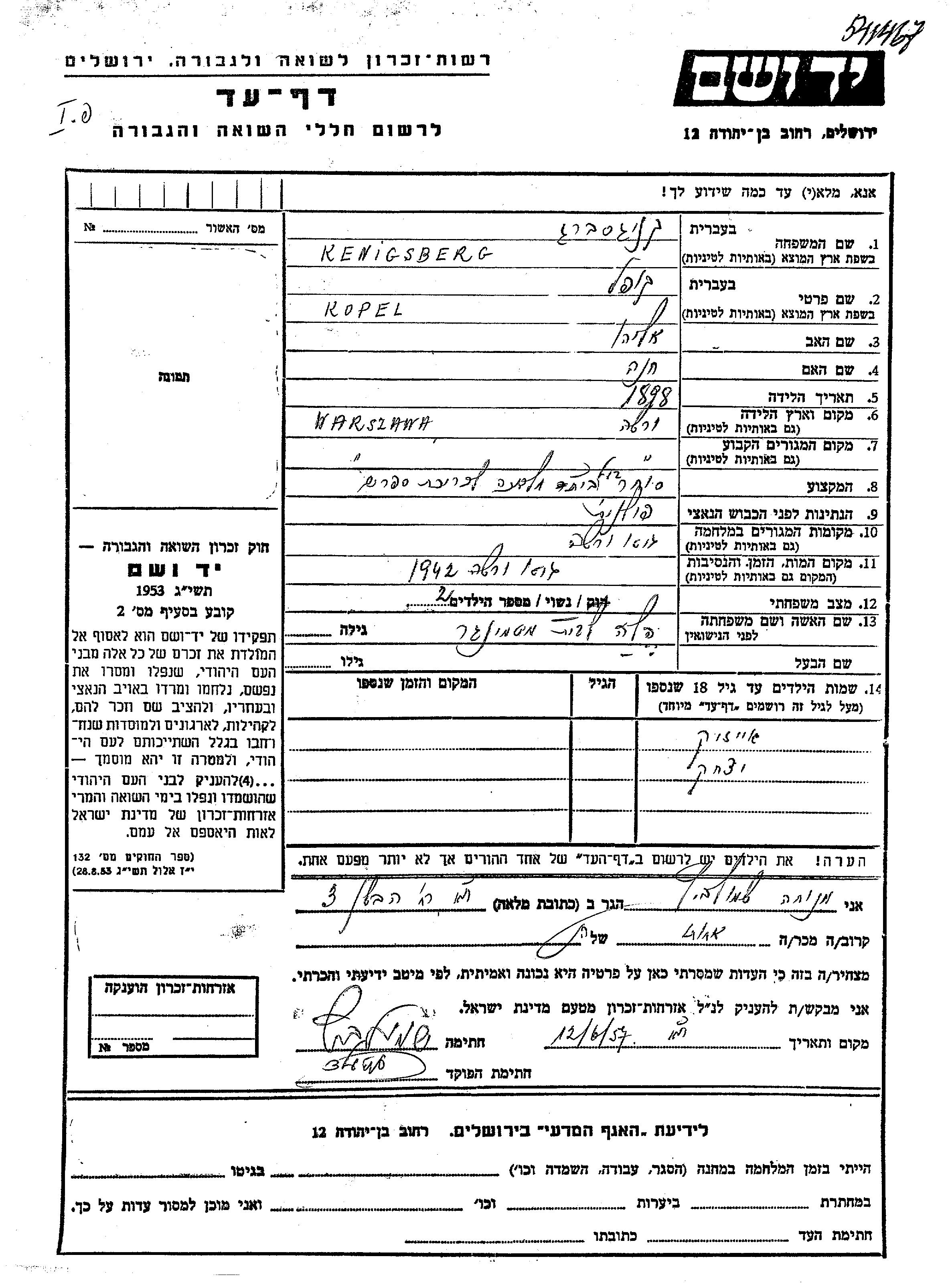 Yitzkhak Kenigsberg. Vor dem Zweiten Weltkrieg lebte er in Warsaw, Polen.
