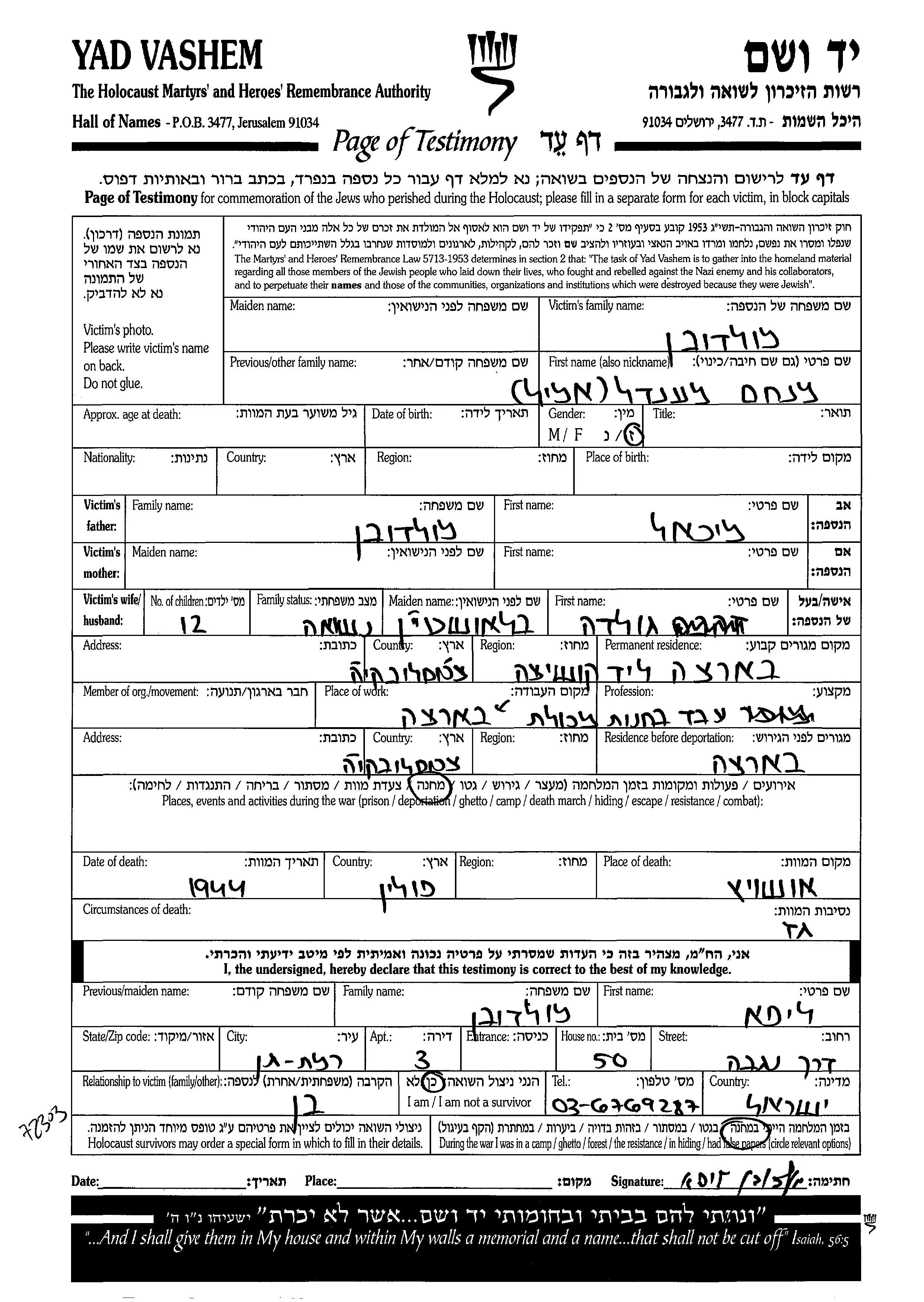 Yosef Emil Menakhem Mendl wurde in der Schoah ermordet. Todesort: Auschwitz, Polen im Jahr 1944.