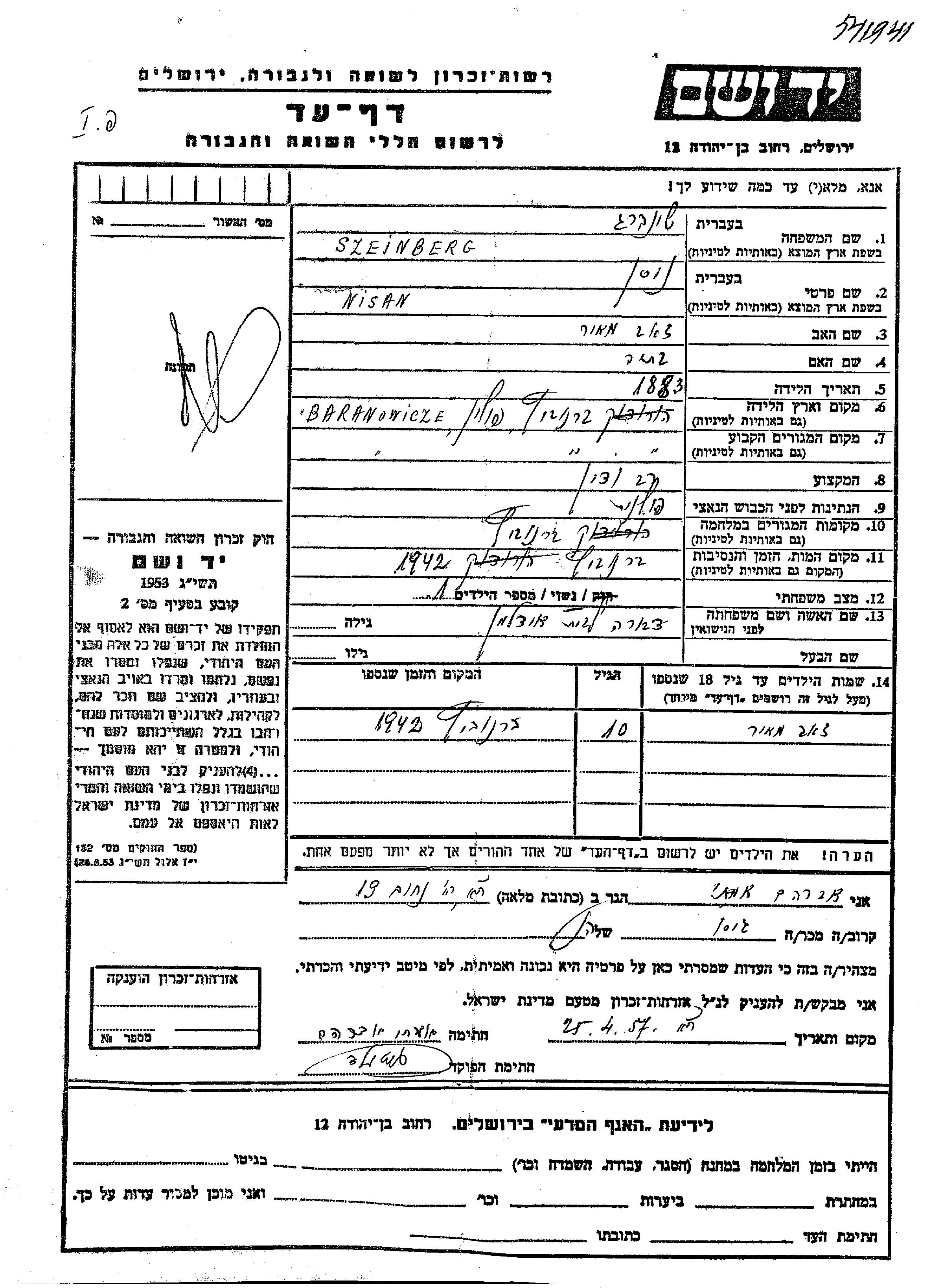 Nison Nisan wurde in der Schoah ermordet. Todesort: Baranowicze, Polen im Jahr 1942.