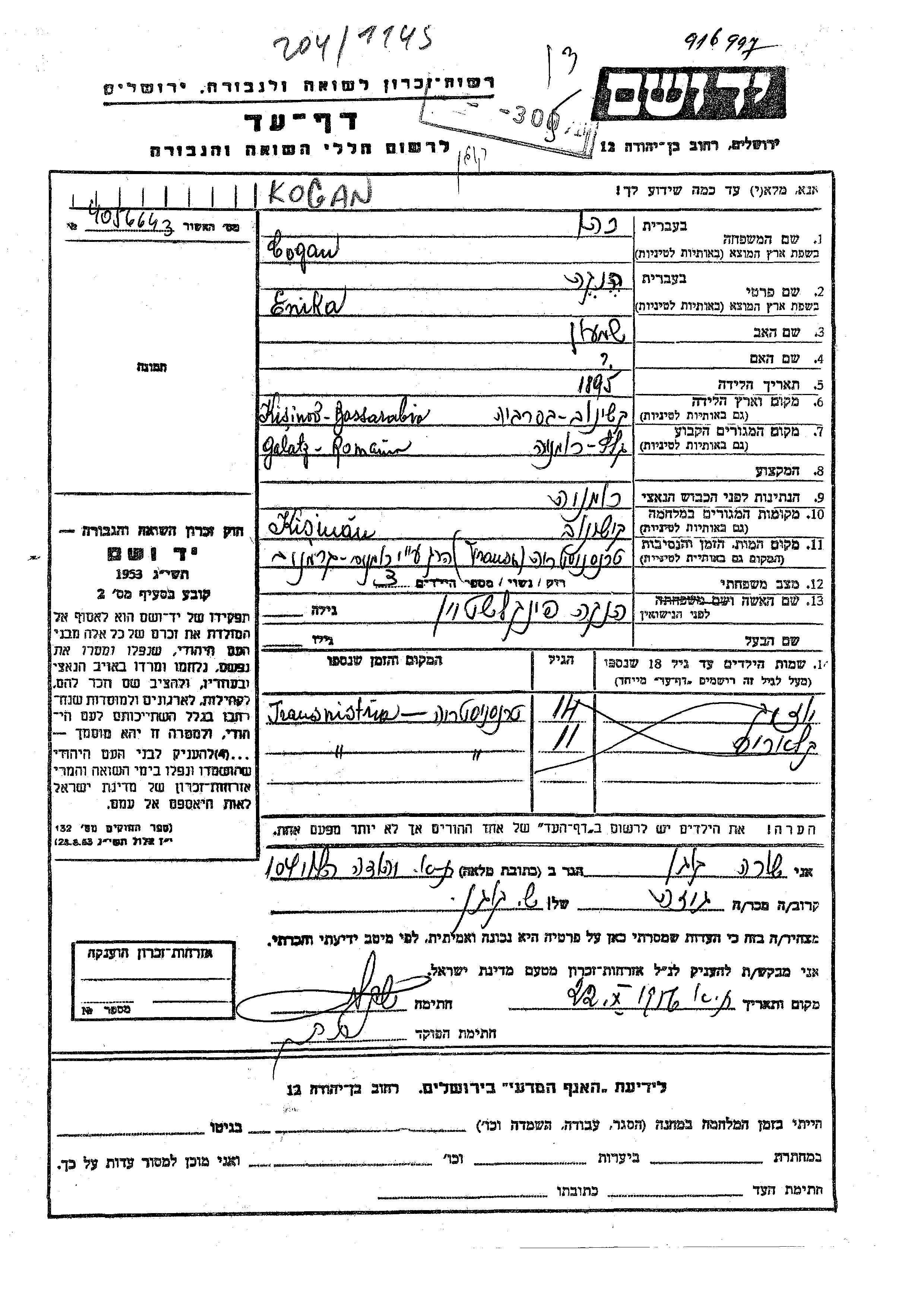 Iuzik Cogan Kohen. Vor dem Zweiten Weltkrieg lebte er in Galati, Rumänien.