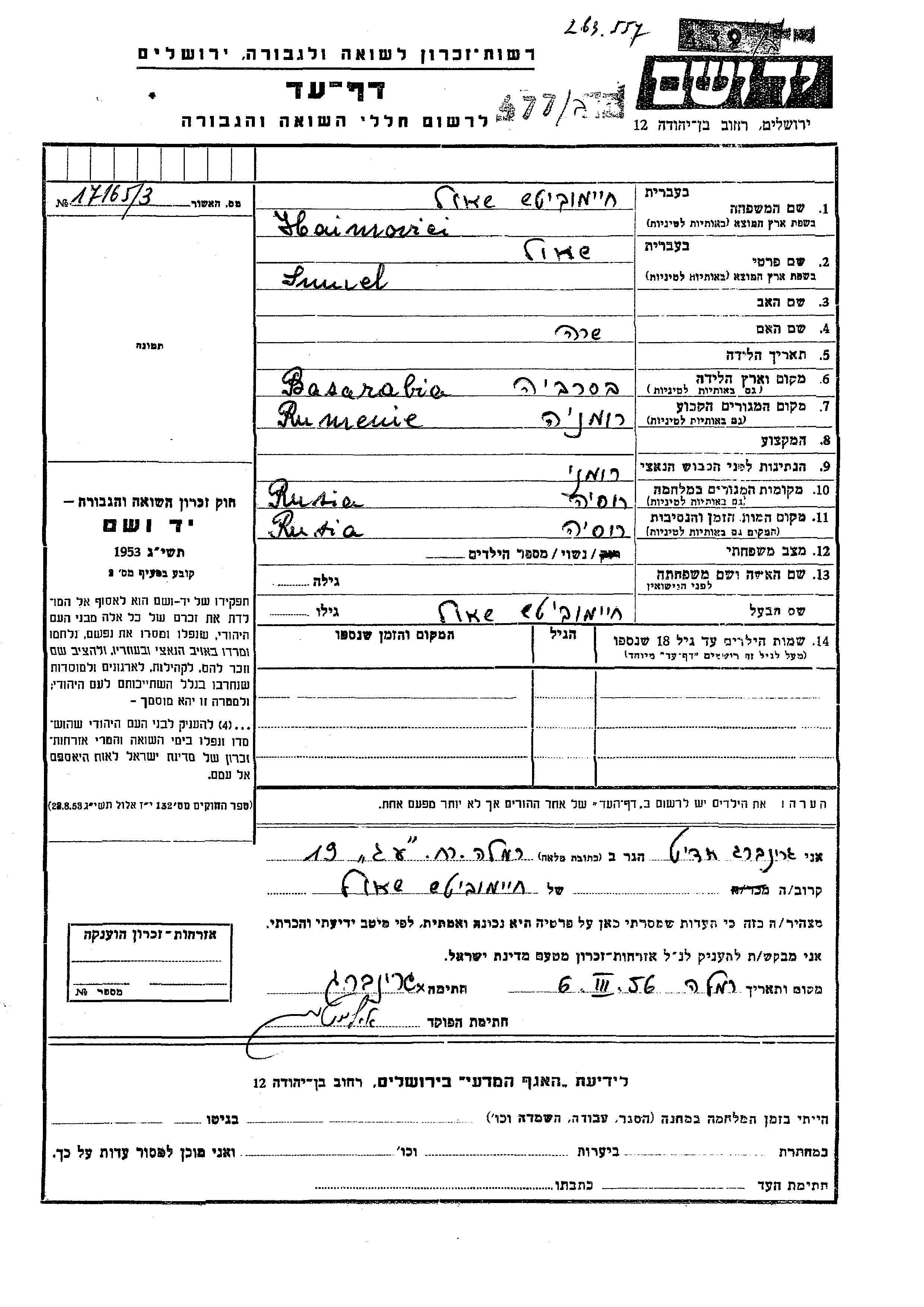 Smuel Shaul Haimovici wurde in Bessarabia, Rumänien geboren. Vor dem Zweiten Weltkrieg lebte er in Rumänien.