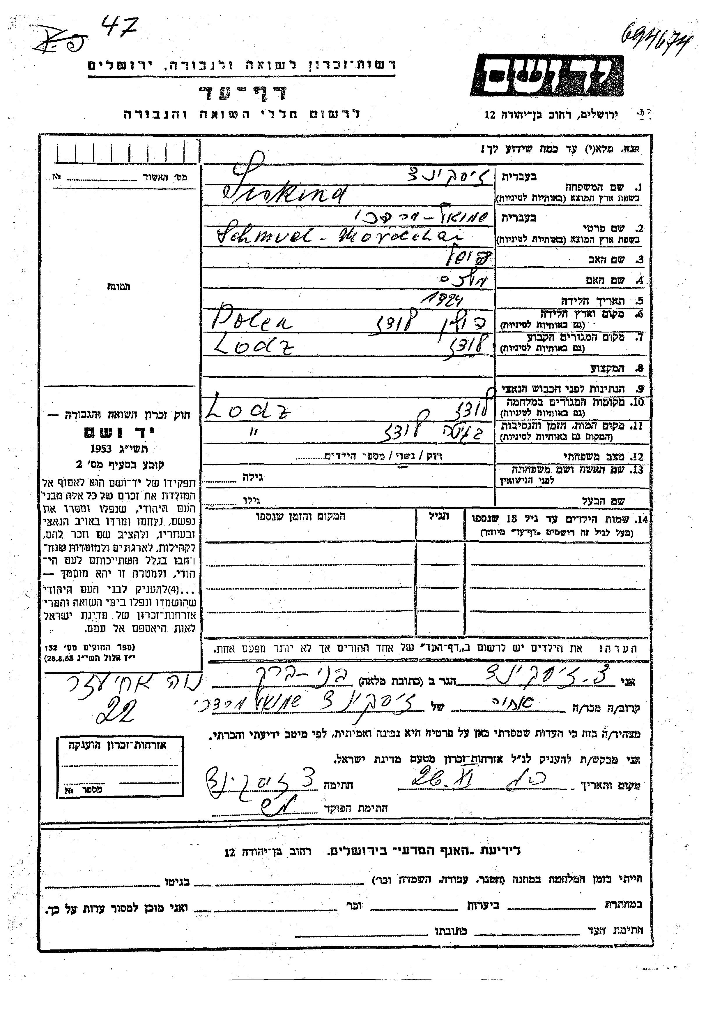 Mordekhai Shmuel wurde in der Schoah ermordet. Todesort: Lodz, Polen im Jahr 1942.
