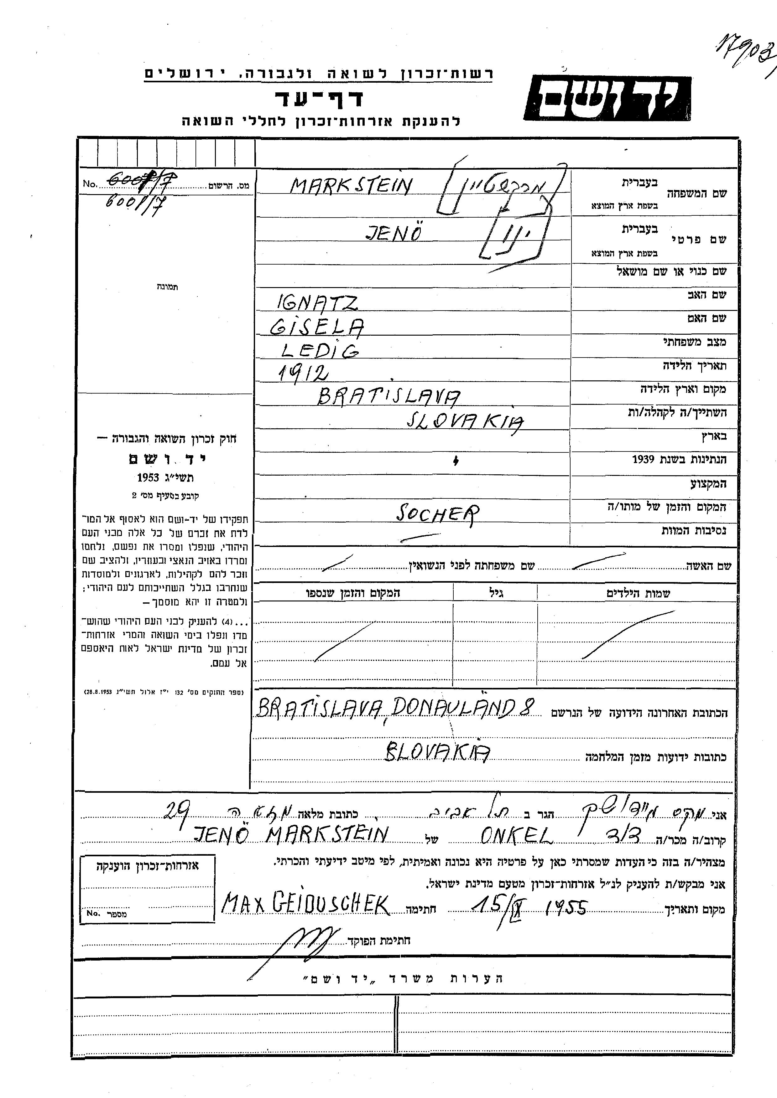 Markstein | Jeno | unbekannter Ort, | Gedenkblatt | |