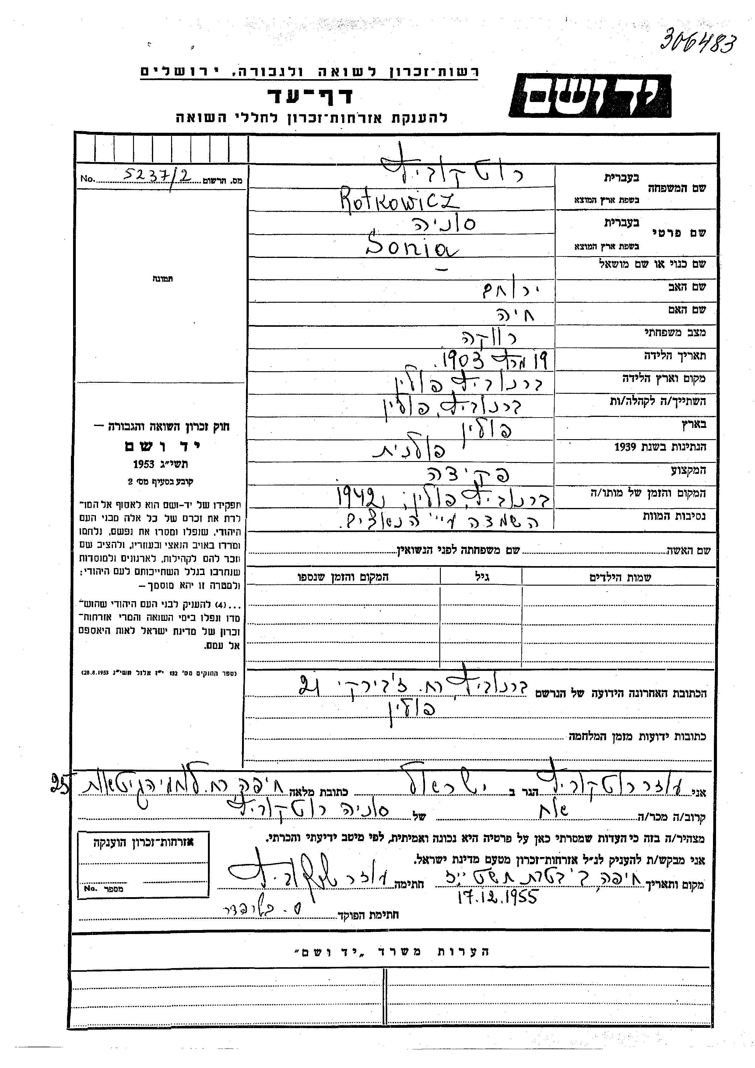 Suche nach einem Todesjahr im Zeitraum der Holocaust: 1933 bis 1945. Bitte wählen Sie 'Exakt' im Auswahlmenü, um nur nach einem einzelnen Jahr zu suchen, alternativ können Sie die flexibleren Optionen '+/- 2 Jahre' oder '+/- 5 Jahre' wählen.