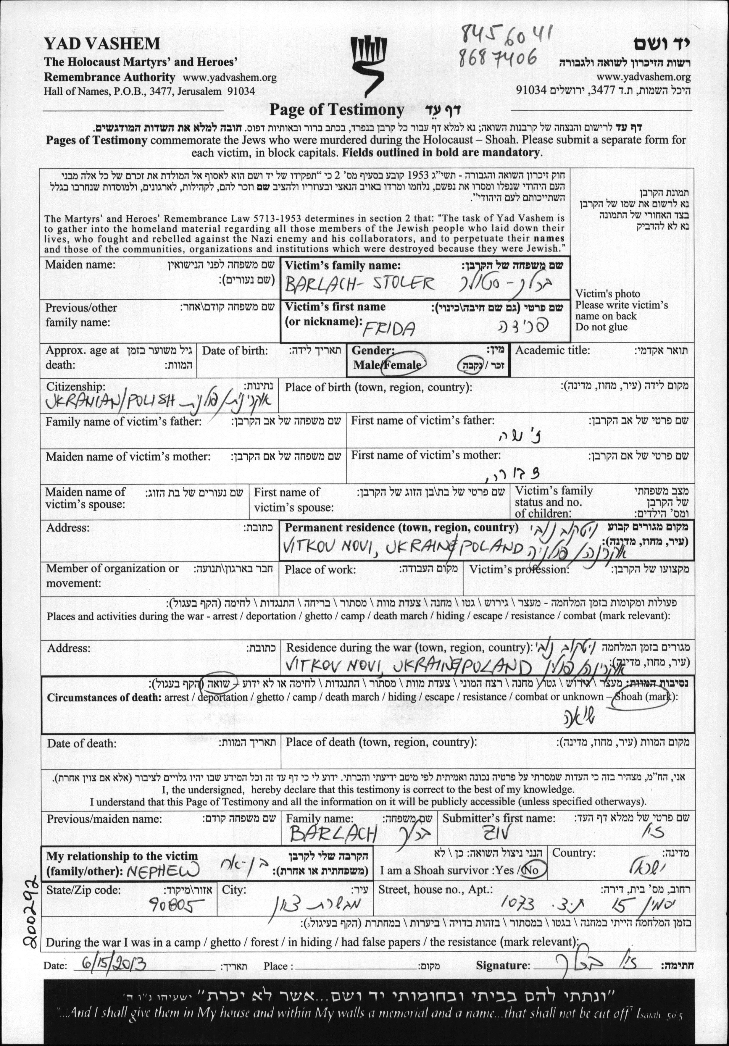 Frida wurde in der Schoah ermordet. Todesort: unbekannter Ort.