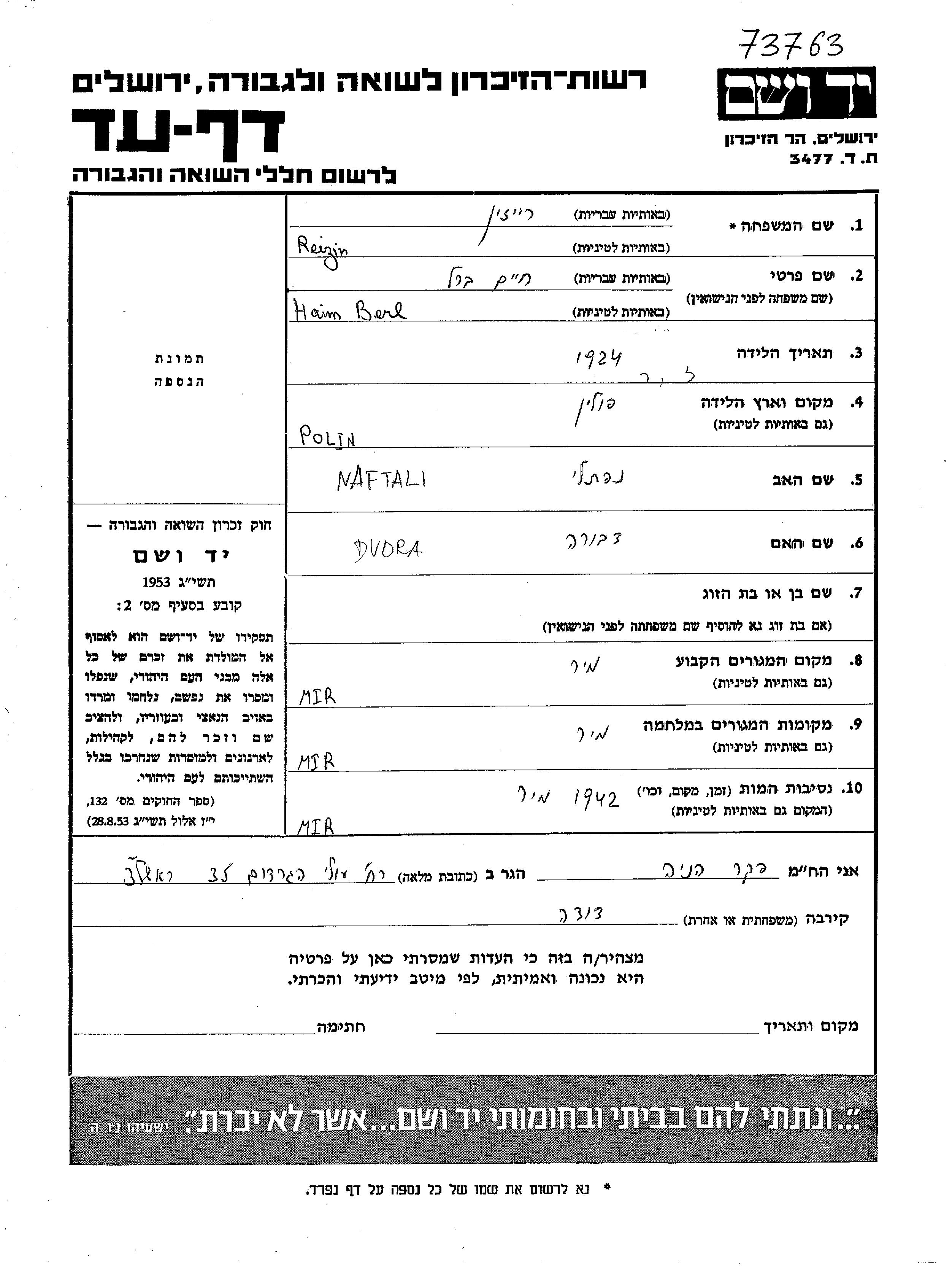 Berl Khaim Dov wurde in der Schoah ermordet. Todesort: Mir, Polen im Jahr 1942.