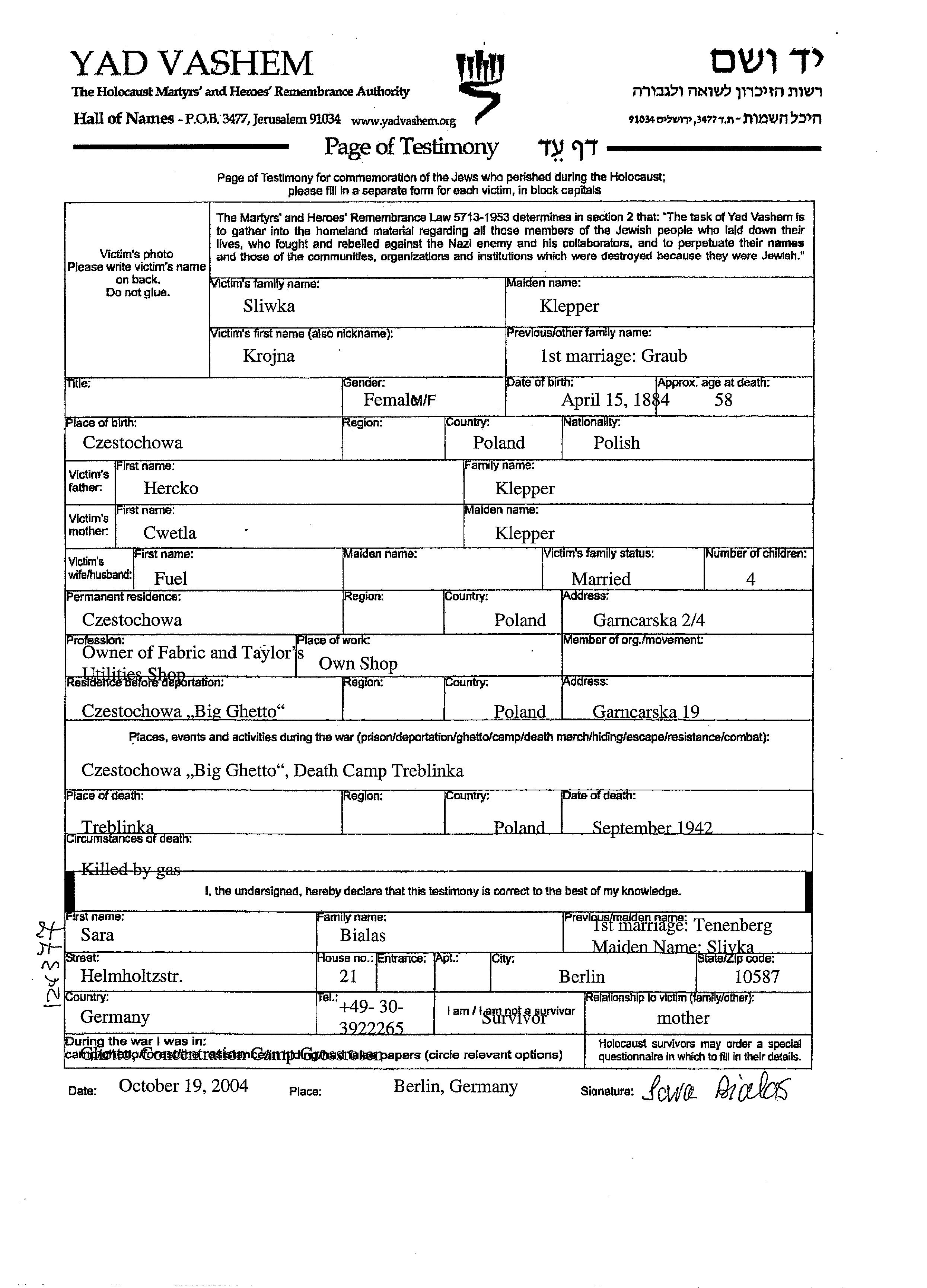 Graub Sliwka | Krojna | 1884 | Czestochowa, Polen | Gedenkblatt |