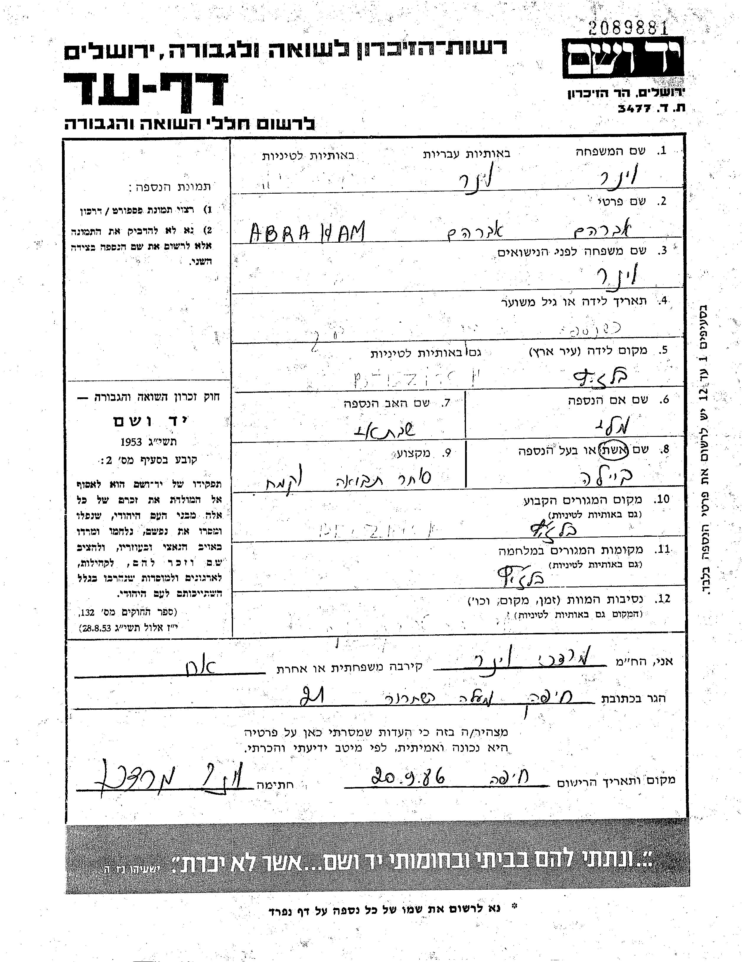 Avraham wurde in der Schoah ermordet. Todesort: unbekannter Ort.