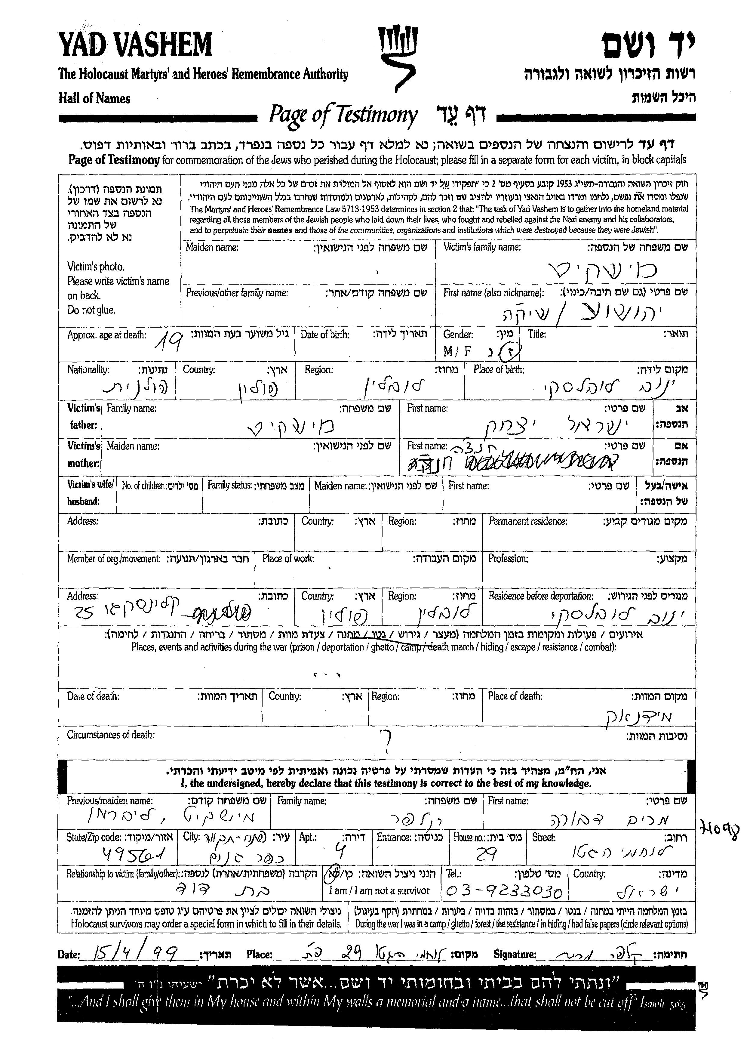 Yehoshua Mysskiet wurde im Jahr 1918 in Janow Lubelski, Polen geboren. Er war Angestellte/-r. Vor dem Zweiten Weltkrieg lebte er in Janow Lubelski, Polen.