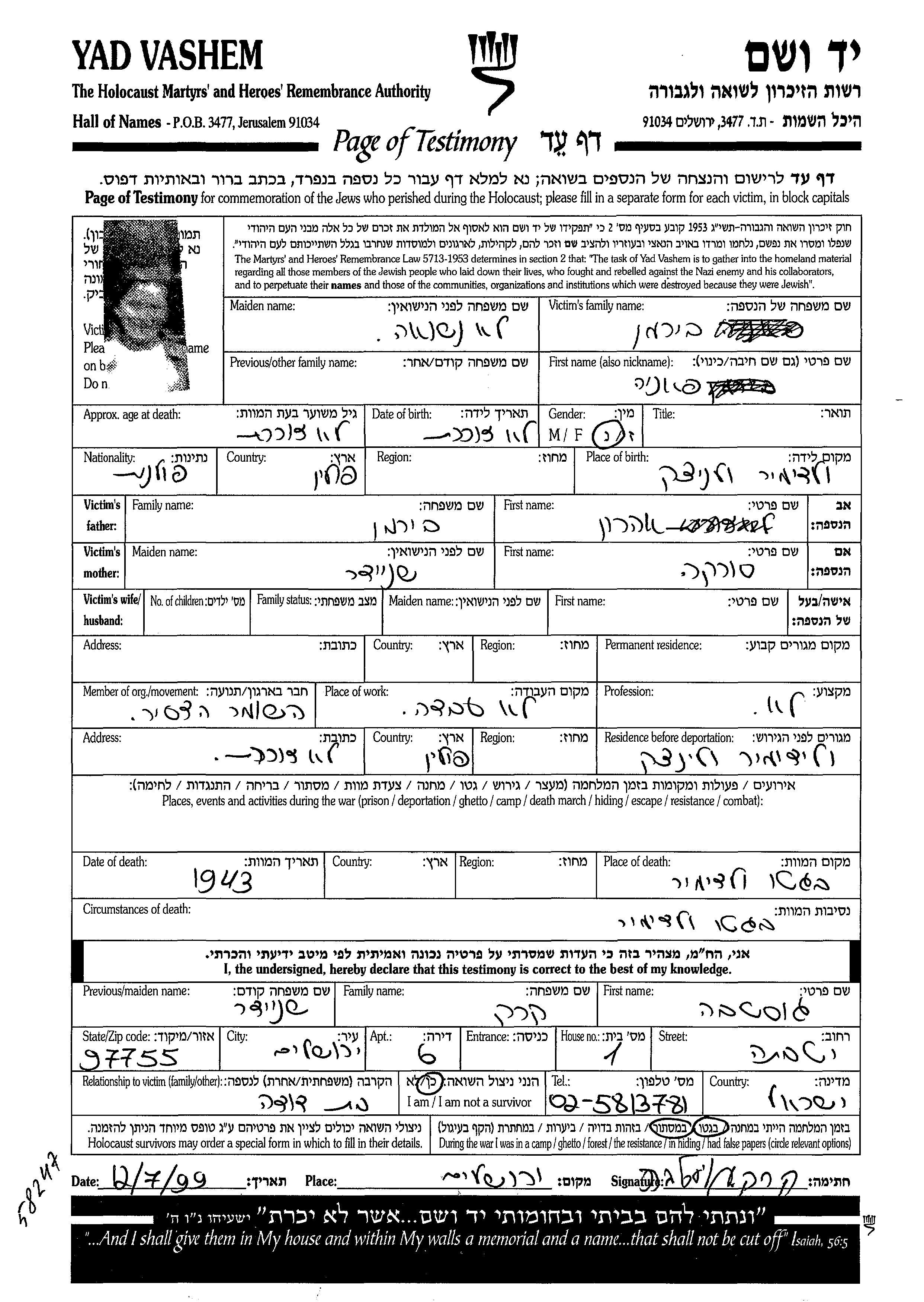 Suche nach einem Todesjahr im Zeitraum der Holocaust: 1933 bis 1945. Bitte wählen Sie 'Exakt' im Auswahlmenü, um nur nach einem einzelnen Jahr zu suchen, alternativ können Sie die flexibleren Optionen '+/- 2 Jahre' oder '+/- 5 Jahre' wählen.