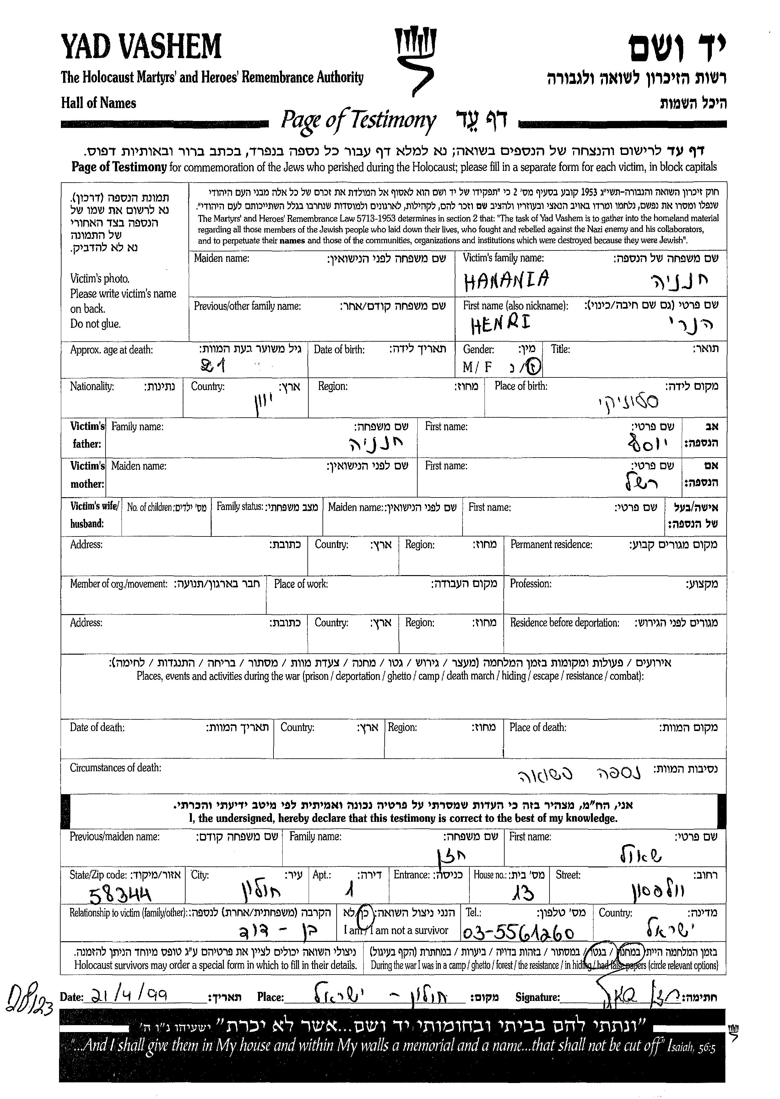 Henri wurde in der Schoah ermordet. Todesort: unbekannter Ort.