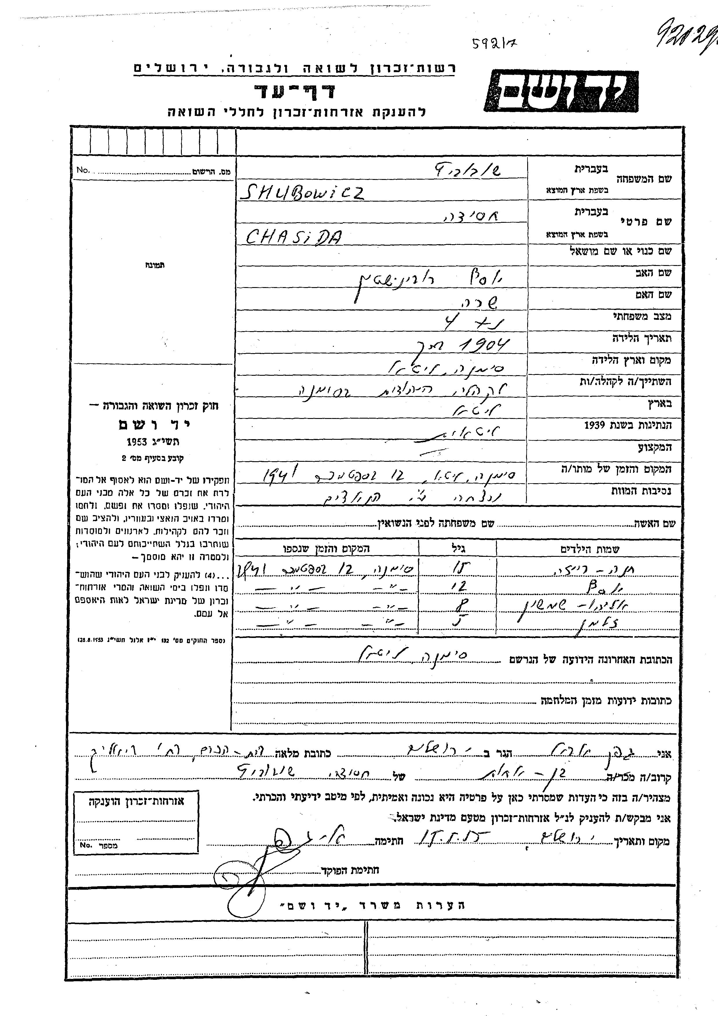 Zalman Shubowicz. Vor dem Zweiten Weltkrieg lebte er in Simnas, Litauen.
