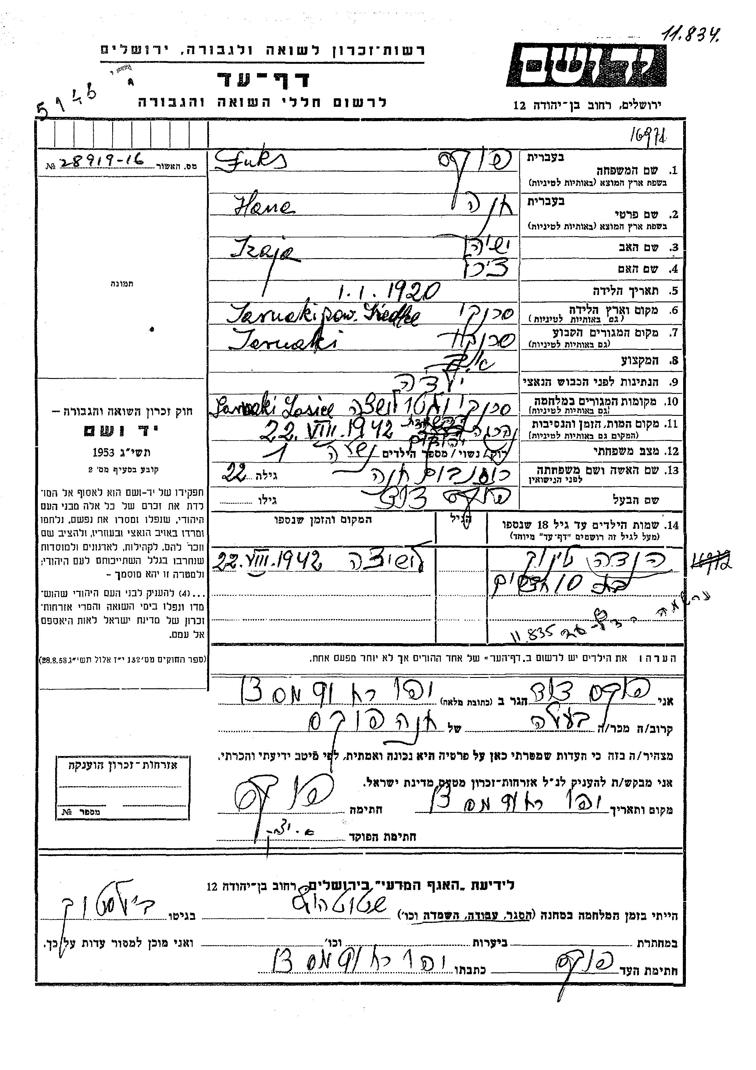 Suche nach einem Todesjahr im Zeitraum der Holocaust: 1933 bis 1945. Bitte wählen Sie 'Exakt' im Auswahlmenü, um nur nach einem einzelnen Jahr zu suchen, alternativ können Sie die flexibleren Optionen '+/- 2 Jahre' oder '+/- 5 Jahre' wählen.