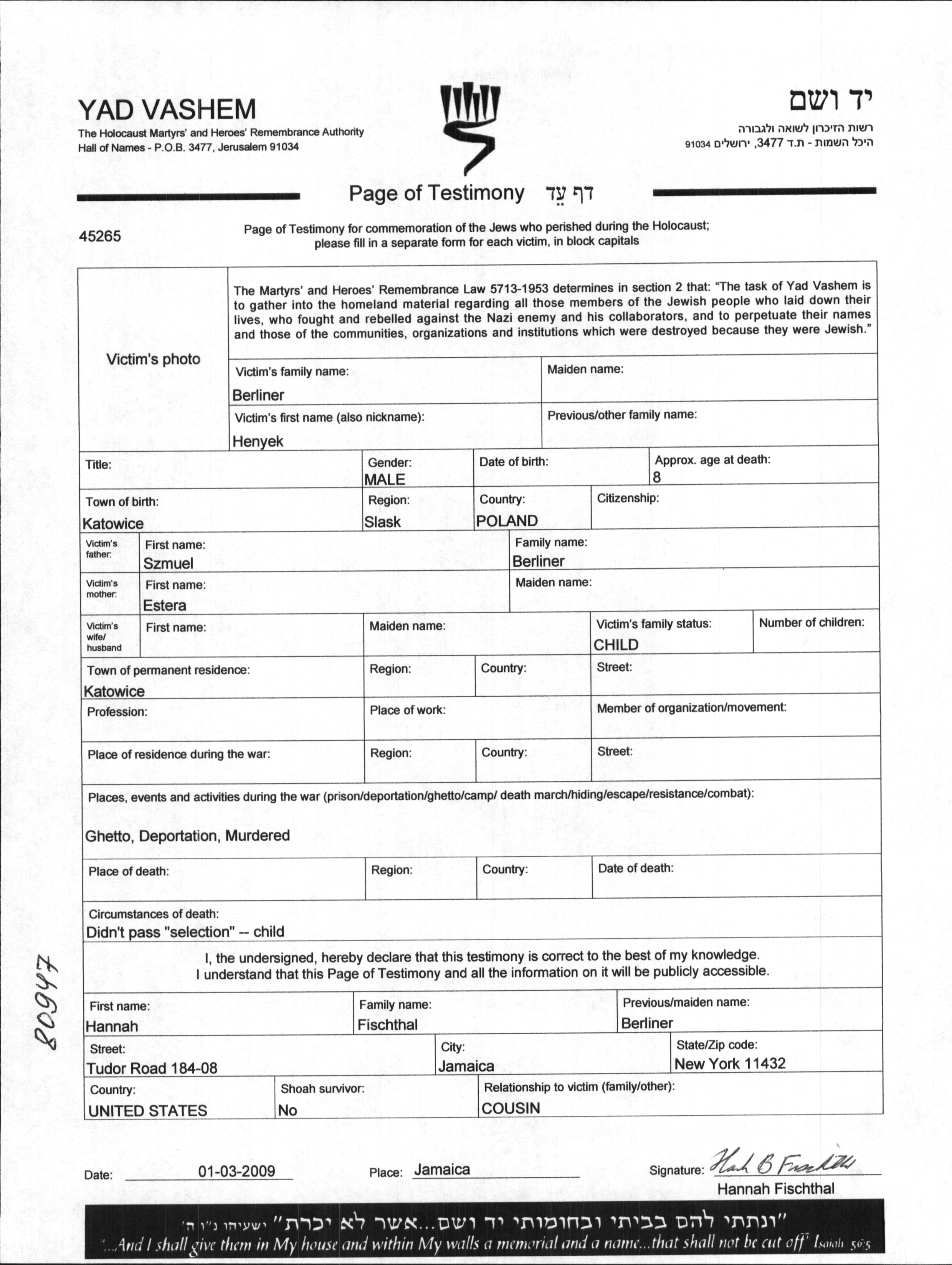 Henyek wurde in der Schoah ermordet. Todesort: unbekannter Ort.