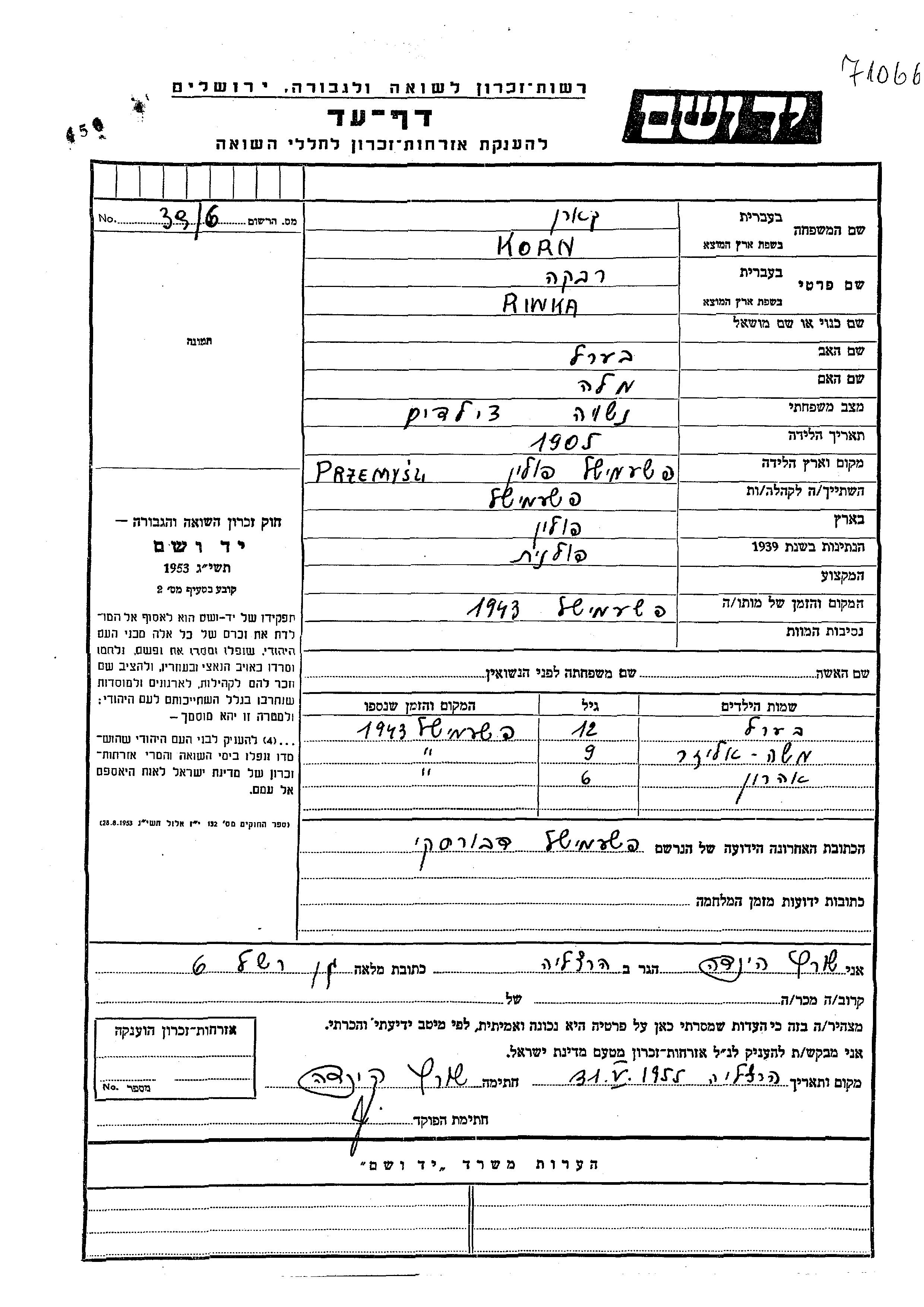 Eliezer Moshe Korn. Vor dem Zweiten Weltkrieg lebte er in Przemysl, Polen.