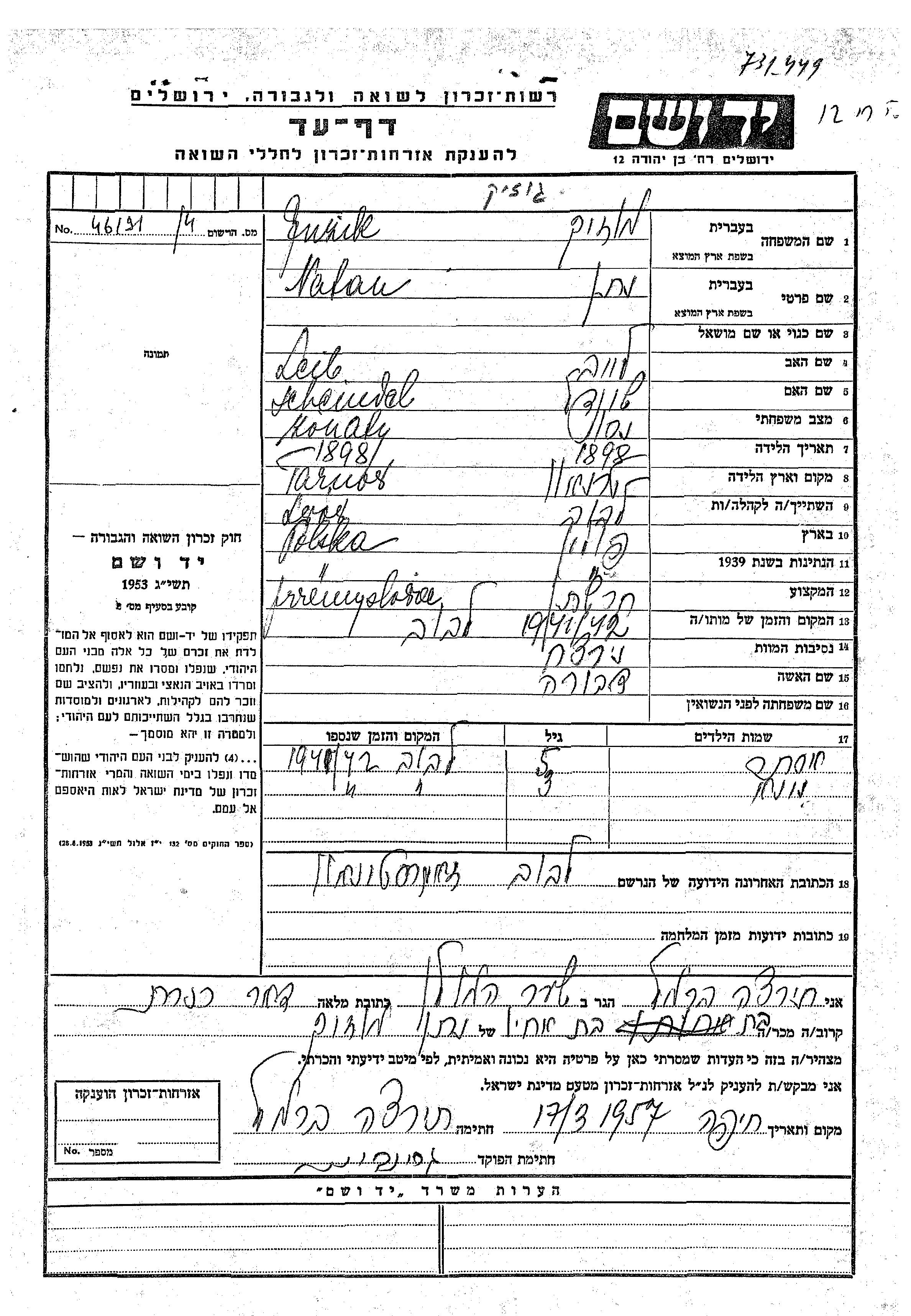 Nuna wurde in der Schoah ermordet. Todesort: unbekannter Ort.