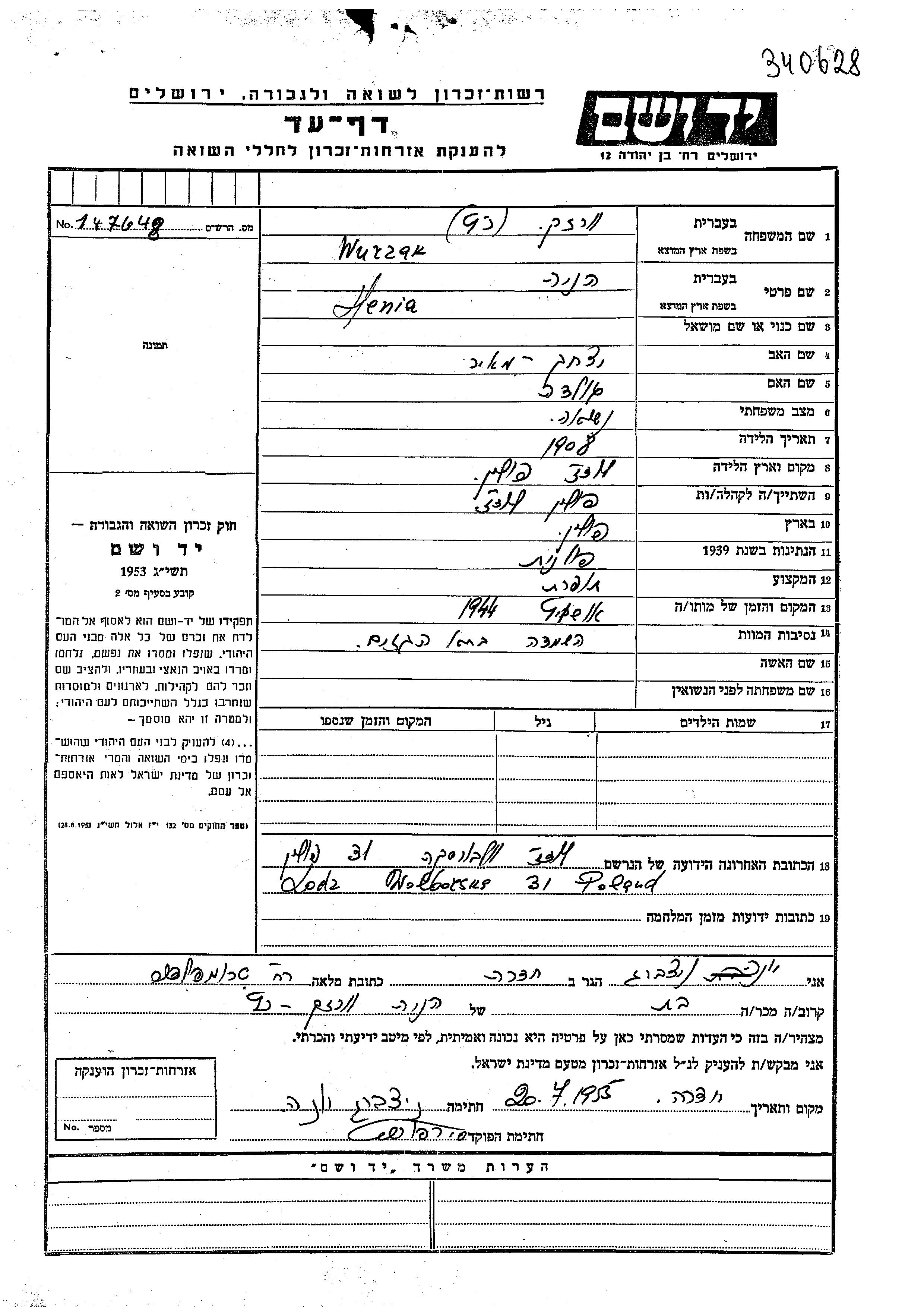 Henia Vorechek Wurzak, geb. Katz wurde im Jahr 1906 in Lodz, Polen geboren. Vor dem Zweiten Weltkrieg lebte sie in Lodz, Polen.
