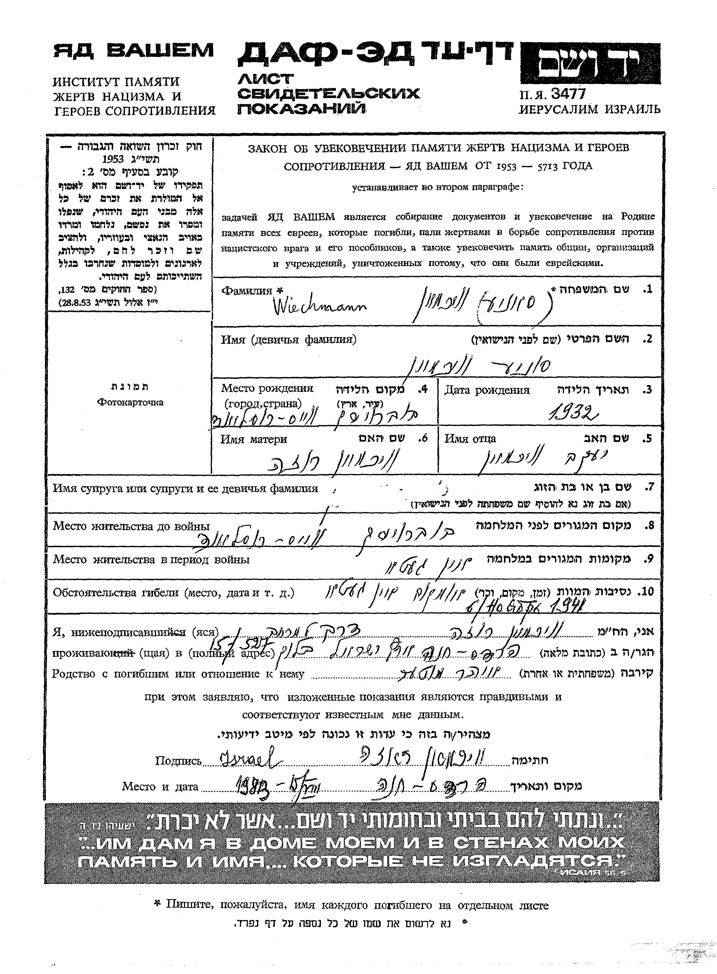 Vikhman Sonya 1931 Bobruysk, Weißrussland (UdSSR) Gedenkblatt