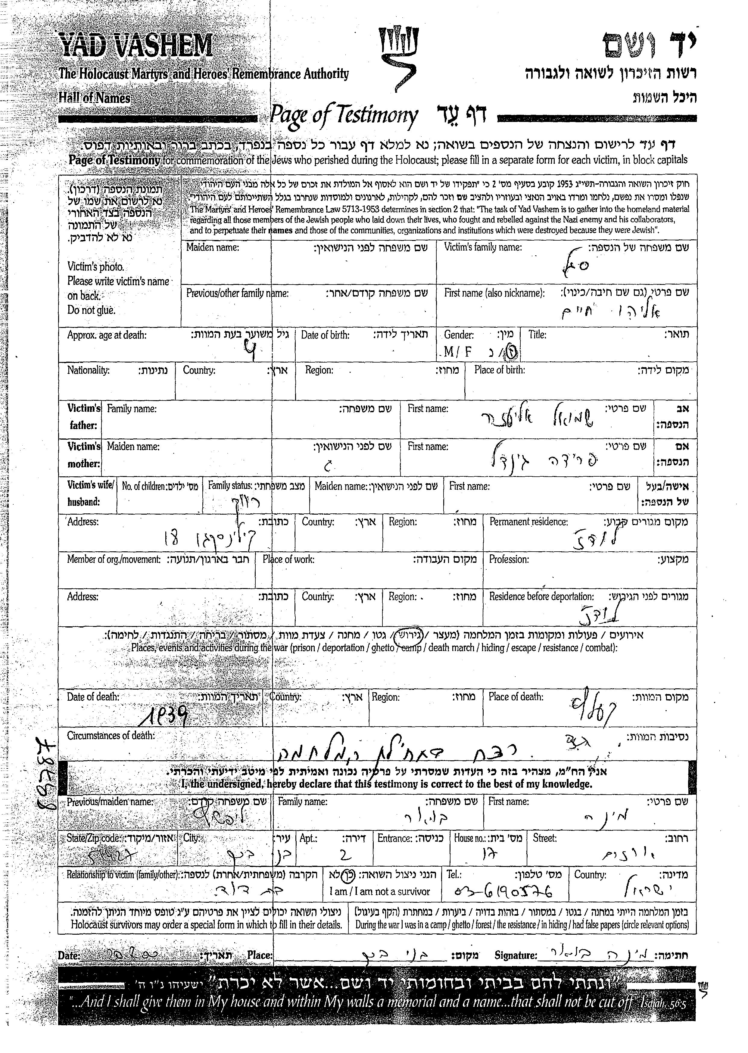 Eliahu Khaim wurde in der Schoah ermordet. Todesort: Kielce, Polen im Jahr 1939.
