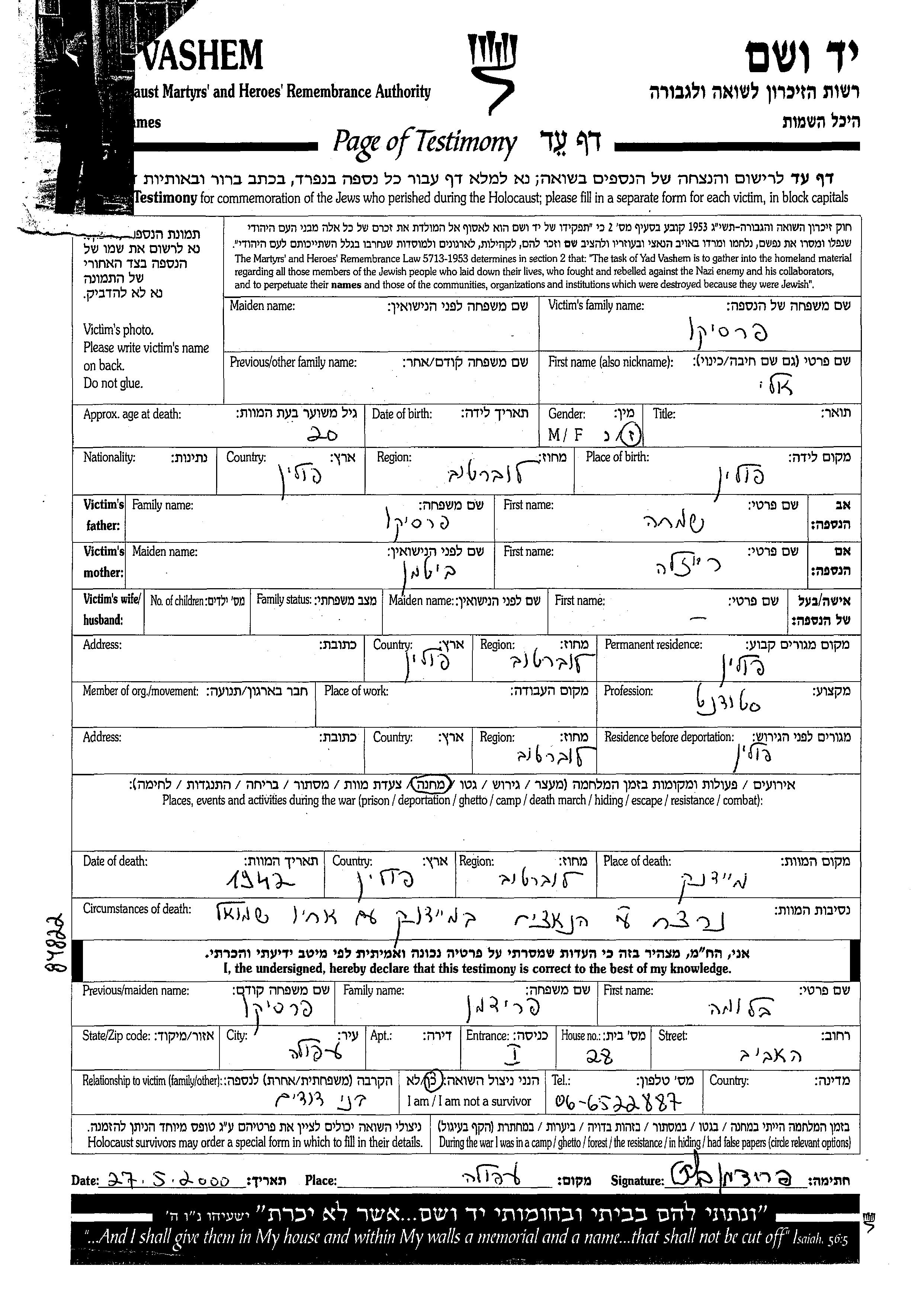 Eliasz wurde in der Schoah ermordet. Todesort: Majdanek, Polen im Jahr 1942.
