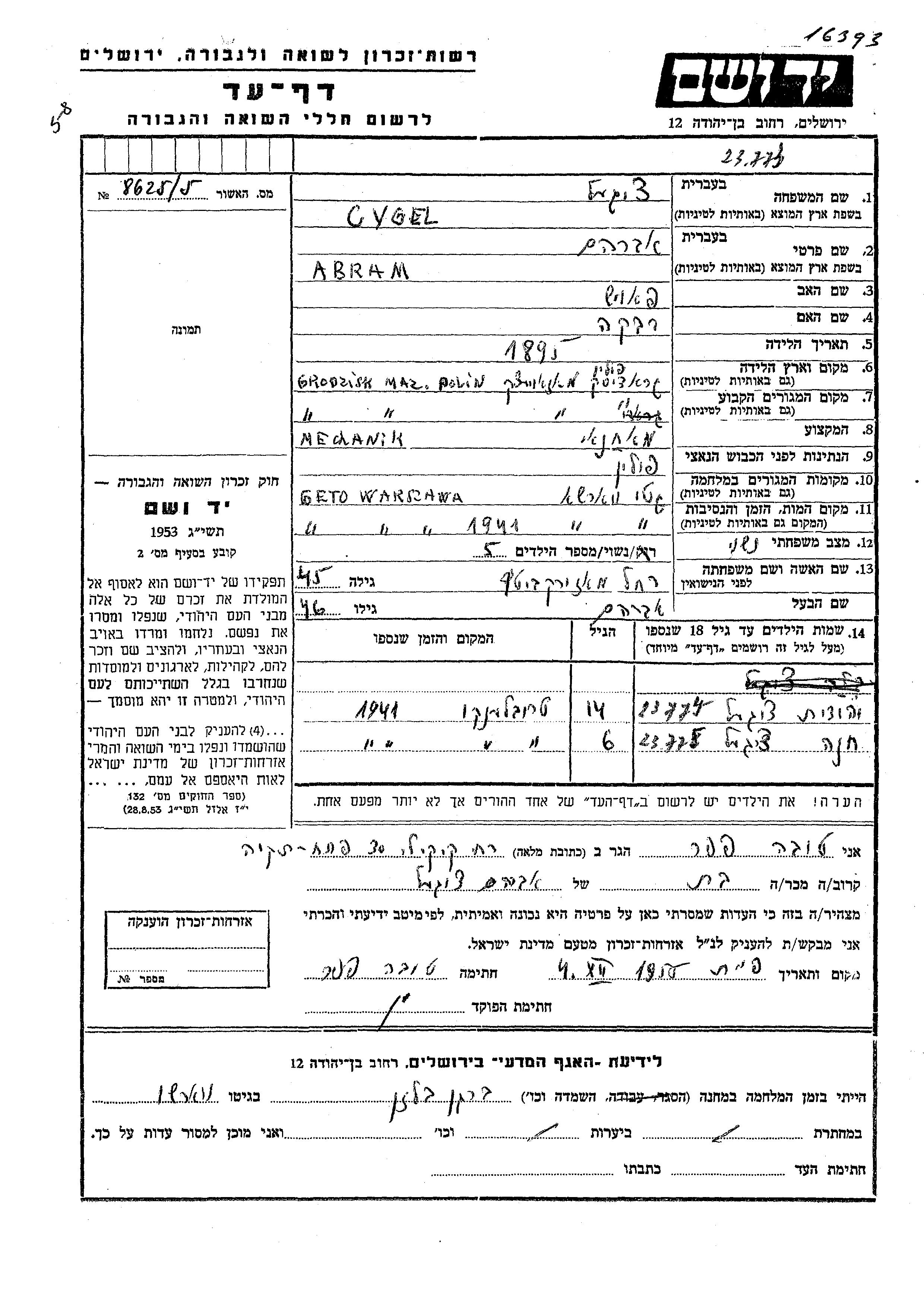 Avraham wurde in der Schoah ermordet. Todesort: Warszawa, Polen im Jahr 1941.