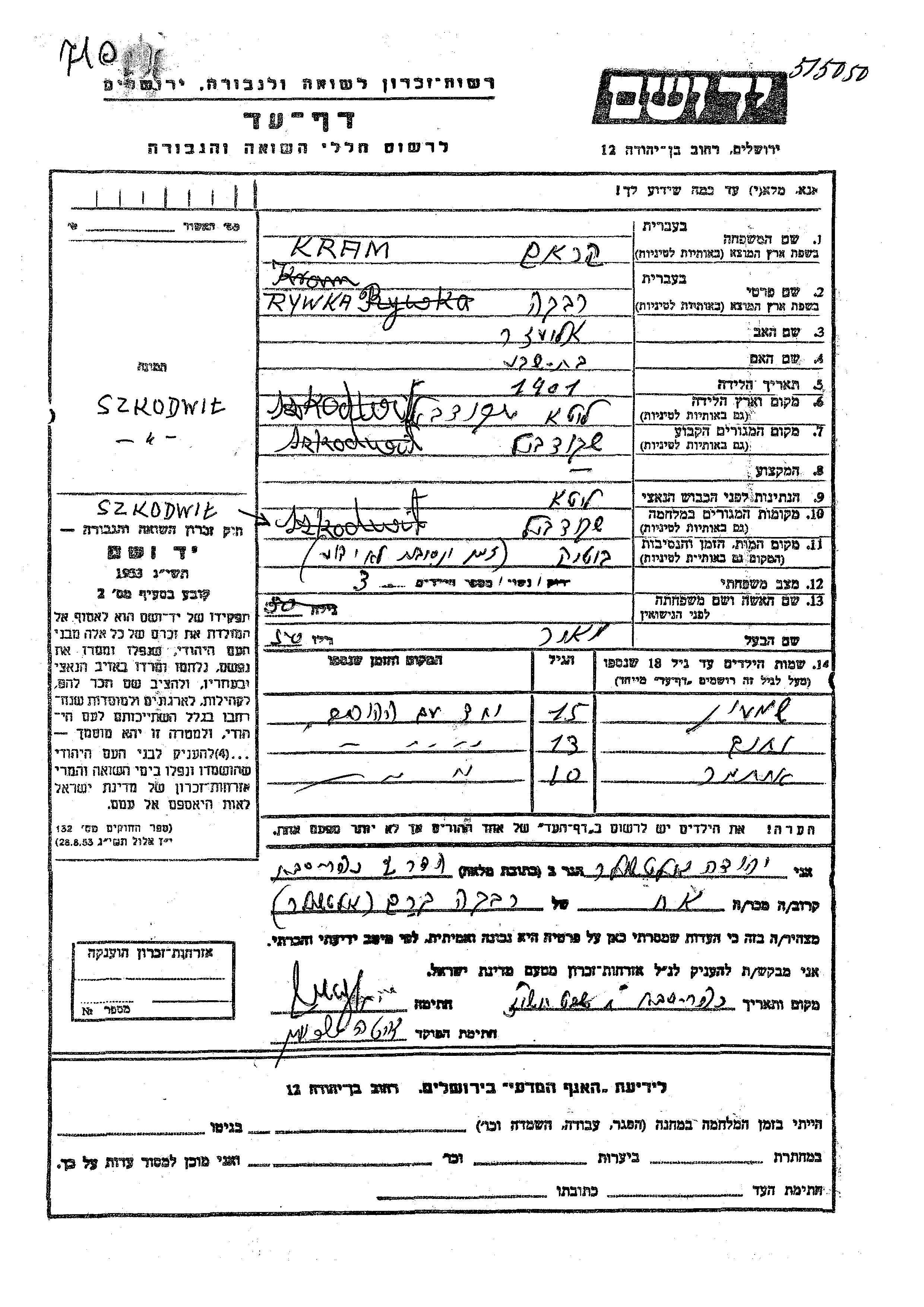 Kramiene Cipora Rivka 1903 Skaudvile, Litauen Gedenkblatt