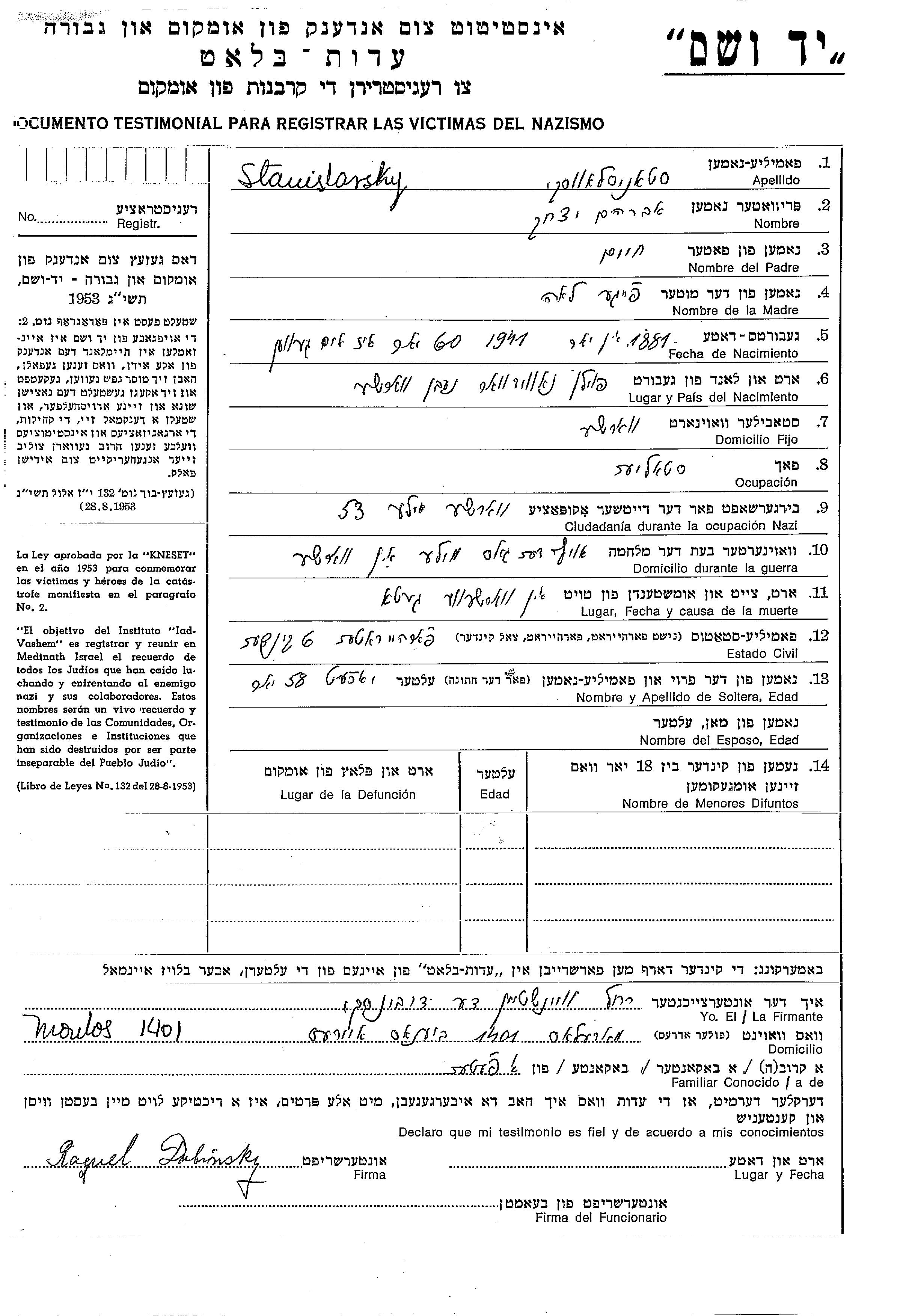 Suche nach einem Todesjahr im Zeitraum der Holocaust: 1933 bis 1945. Bitte wählen Sie 'Exakt' im Auswahlmenü, um nur nach einem einzelnen Jahr zu suchen, alternativ können Sie die flexibleren Optionen '+/- 2 Jahre' oder '+/- 5 Jahre' wählen.